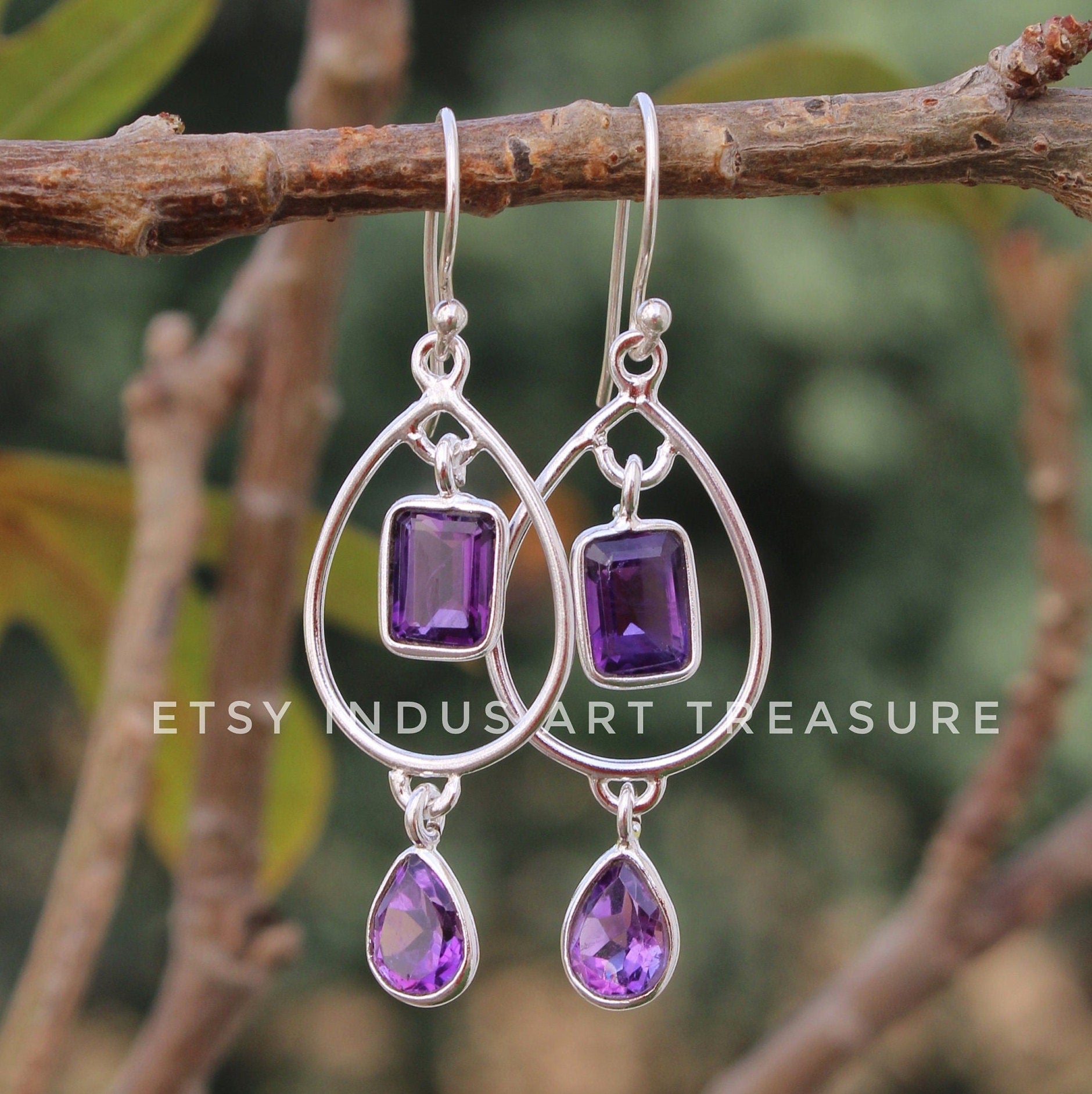 Product : Beautiful Purple Amethyst Silver Drop Earrings, 925 Sterling Silver Earrings, Earrings for Women, Purple Amethyst Earrings, Purple Gemstone Earrings, Gift for Girls, Party Wear Jewelry.