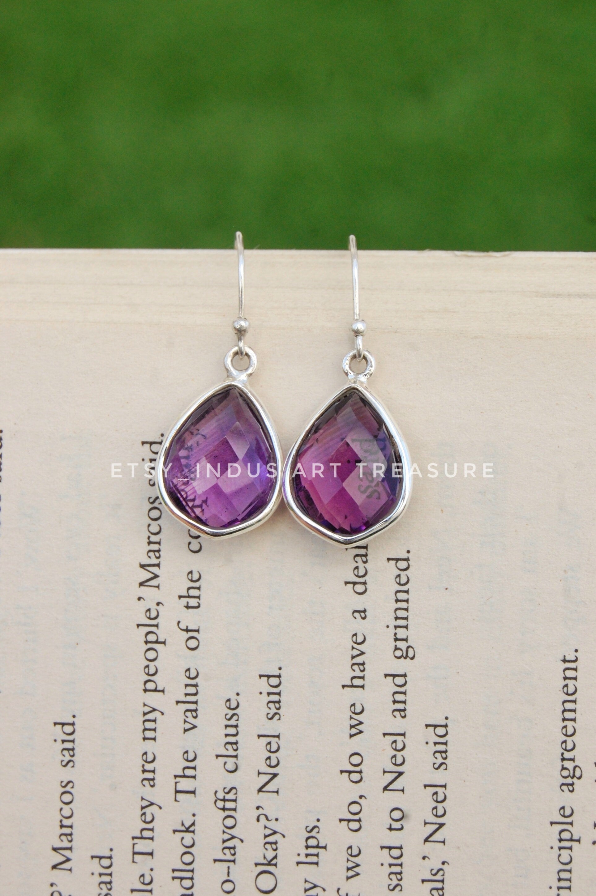 Product : Beautiful Purple Amethyst Silver Drop Earrings, 925 Sterling Silver Earrings, Earrings for Women, Purple Amethyst Earrings, Purple Gemstone Earrings, Gift for Girls, Party Wear Jewelry.