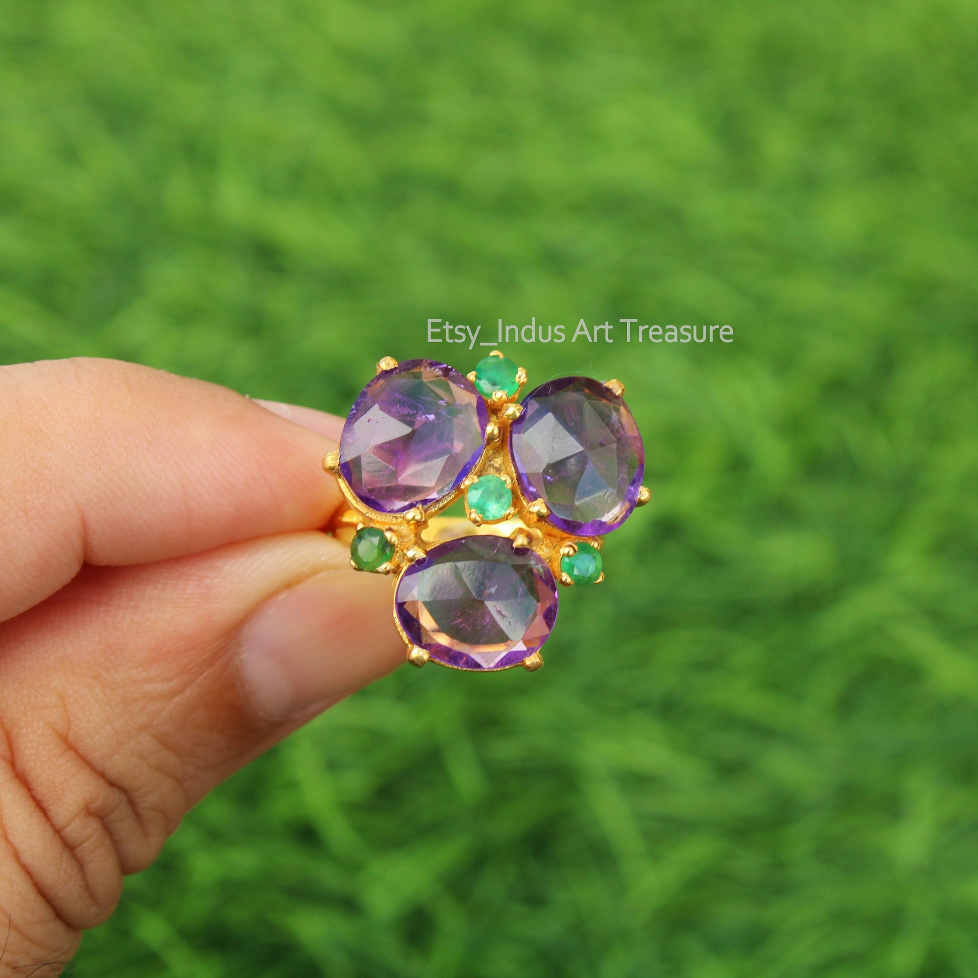 Product : Natural Amethyst Gold Cluster Ring for Special One/ Gold Plated 925 Sterling Silver Ring/ 18k Gold Rings for Women/ Purple Gemstone Ring/ Fine Stone Jewelry/ Perfect Ring for Wedding/ Anniversary Gift Ring for Her.