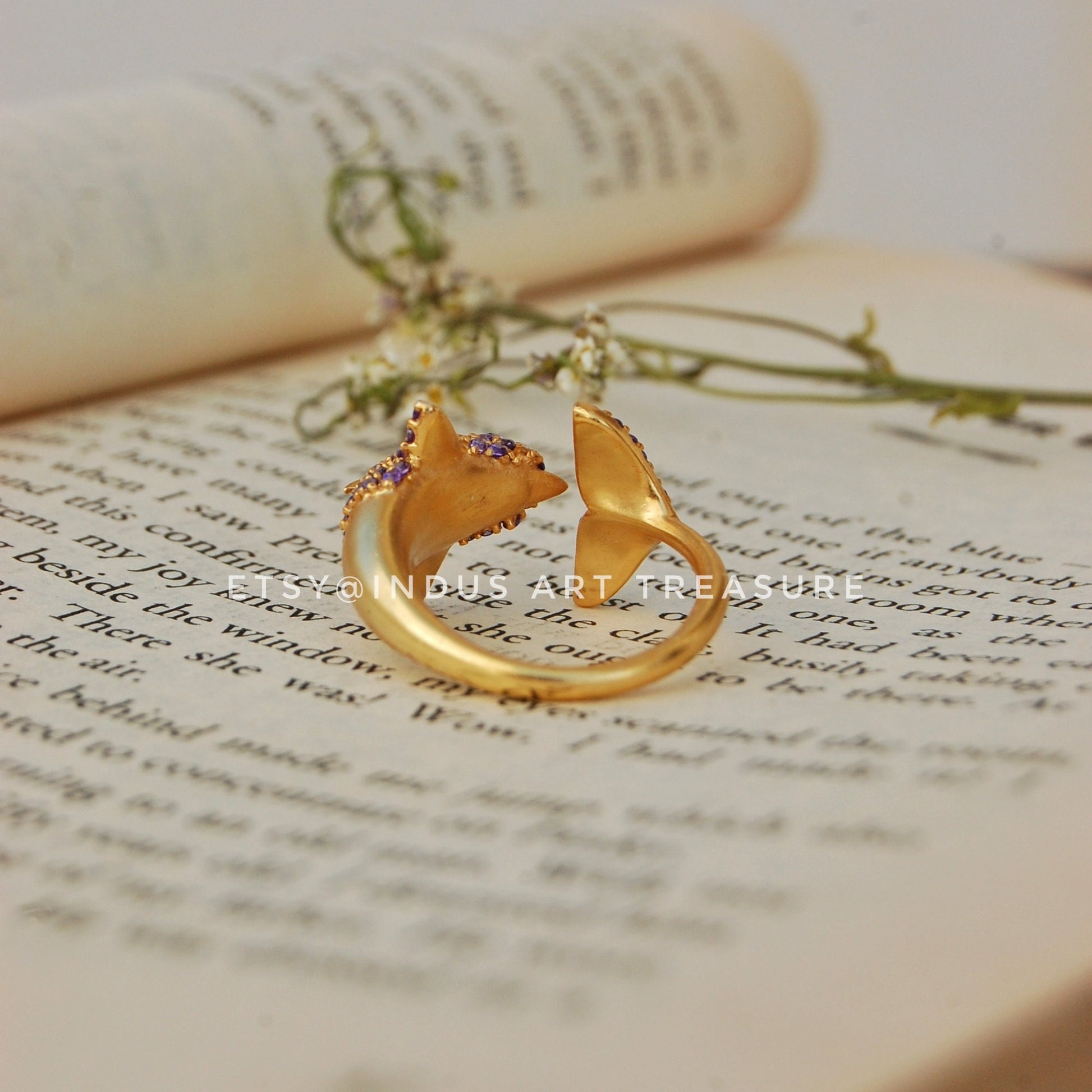 Product : Natural Amethyst Gold Ring, Wrap Around Ring, Gemstone Ocean Ring, Anniversary Gift Ring, Dolphin Ring, Purple Stone Ring, Gifts for Her, Gold Plated 925 Sterling Silver Delicate Ring, Dainty Gold Ring, Wedding Ring Jewelry, Fish Ring, Propose Ring.