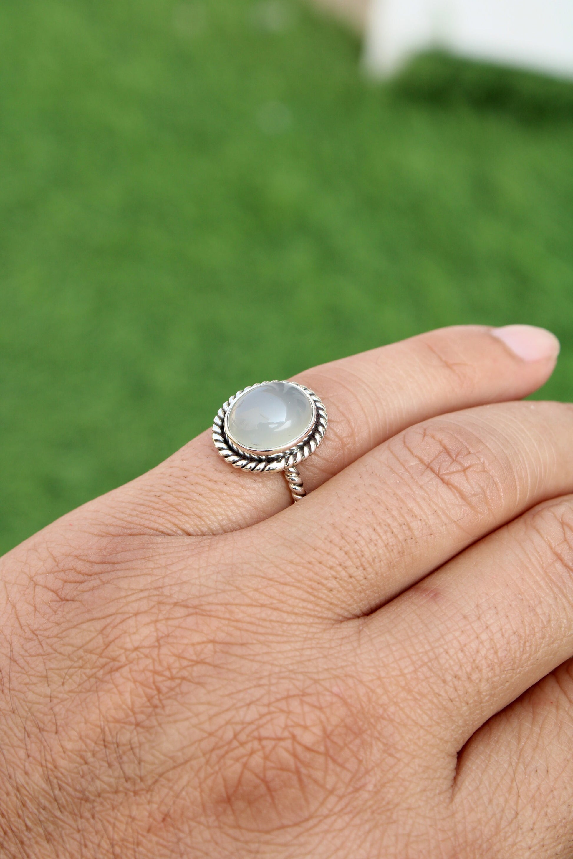 Product : Natural Chalcedony Ring, 925 Sterling Silver Boho Ring, October Birthstone Ring, Aqua Ring, Gift Ring for Her, Twisted Band Ring, Festival Ring.