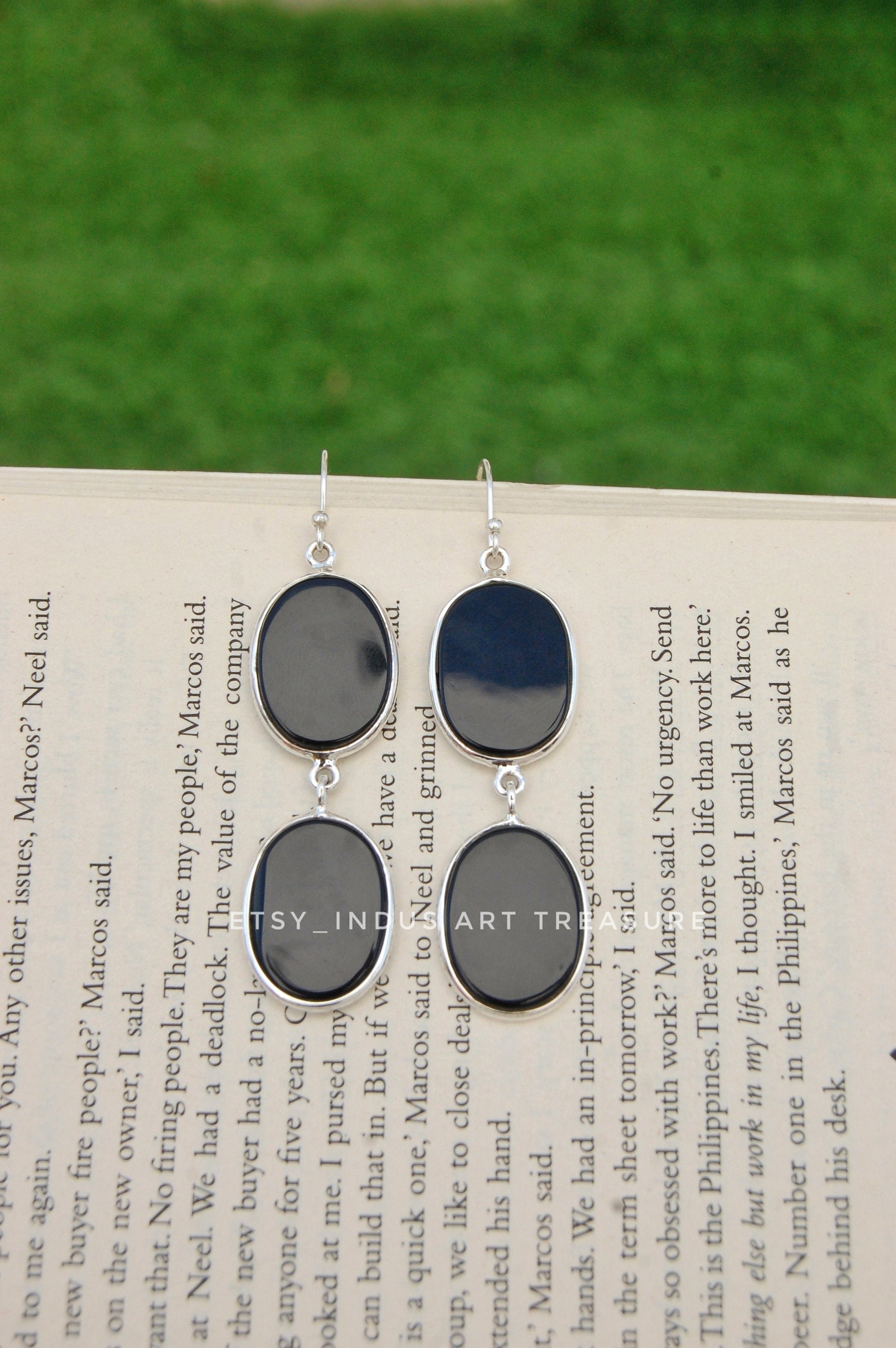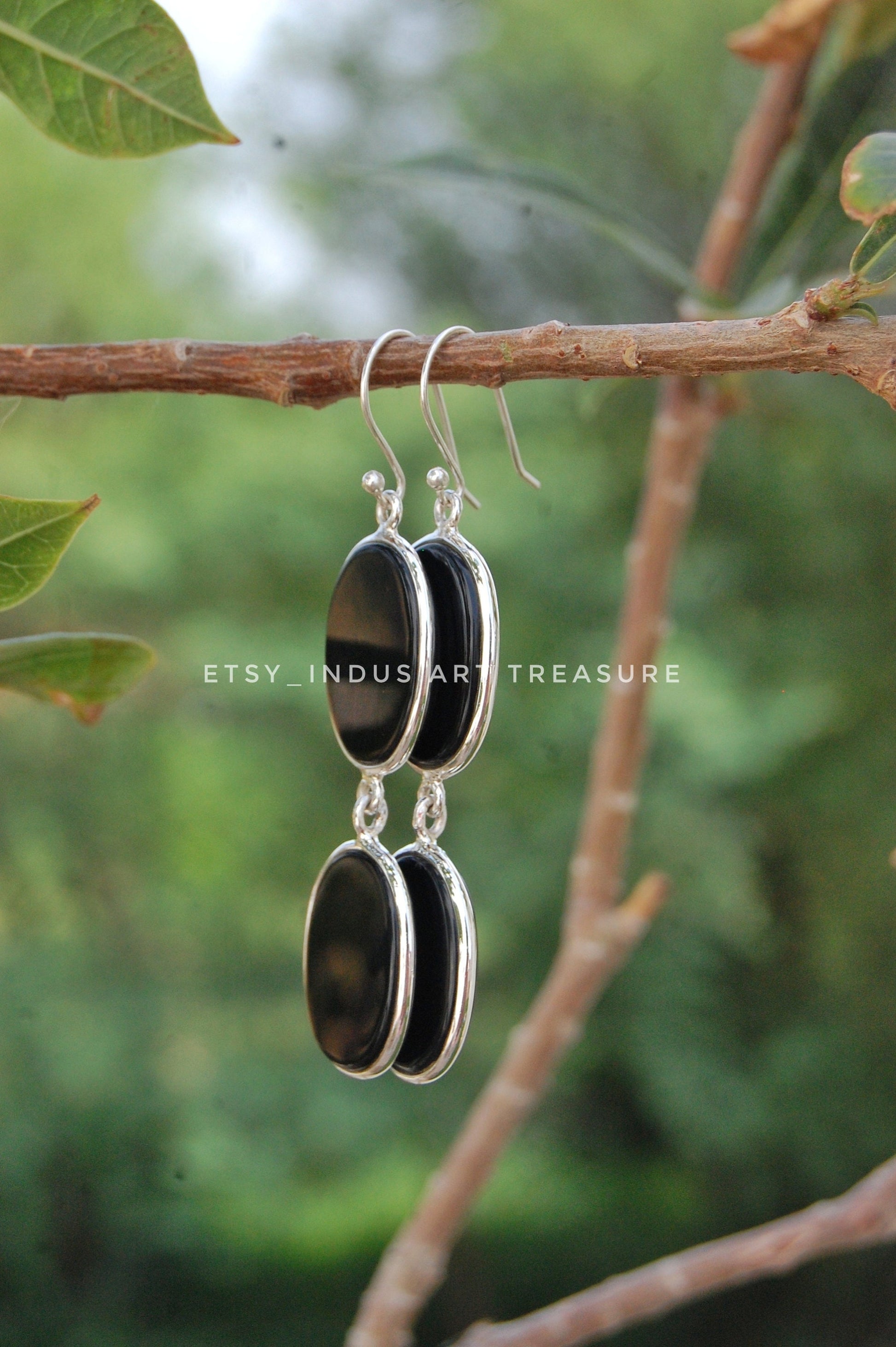 Product : Natural Black Onyx Handmade Drop Earrings/ 925 Sterling Silver Earrings/ December Birthstone Jewelry/ Black Earrings for Women/ Birthday Gift for Her/ Handmade Jewelry/ Indian Handmade Jewelry/ Black Onyx Earrings/ Dangling Gemstone Earrings /Long Drop Earrings.