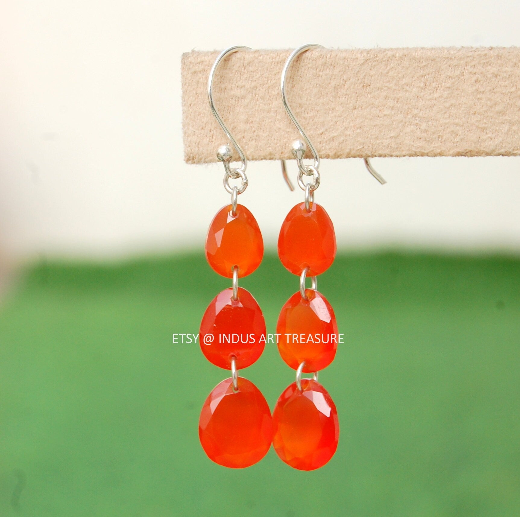 Product : Natural Carnelian Long Dangling Earrings for Love, Earrings for Women, Anniversary Gifts for Mom, Festival Gifts, Orange Earrings, Fine Stone Jewelry, Nickel Free Silver Jewelry, 925 Sterling Silver Earrings, Gemstone Earrings.
