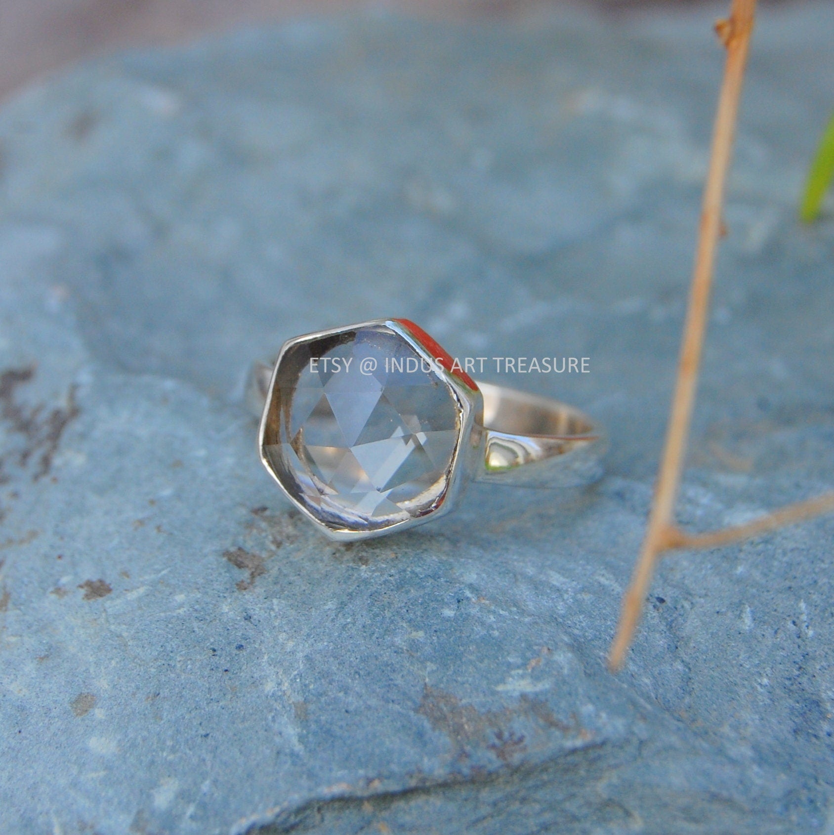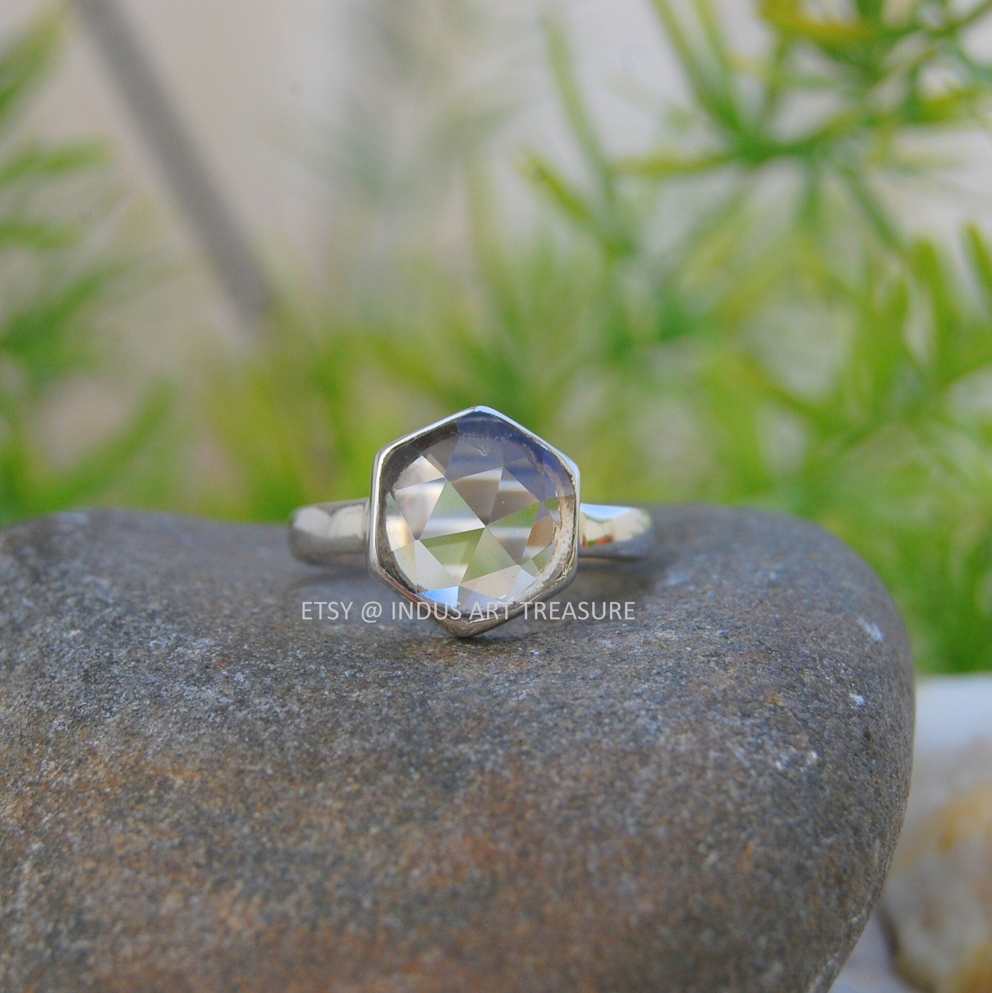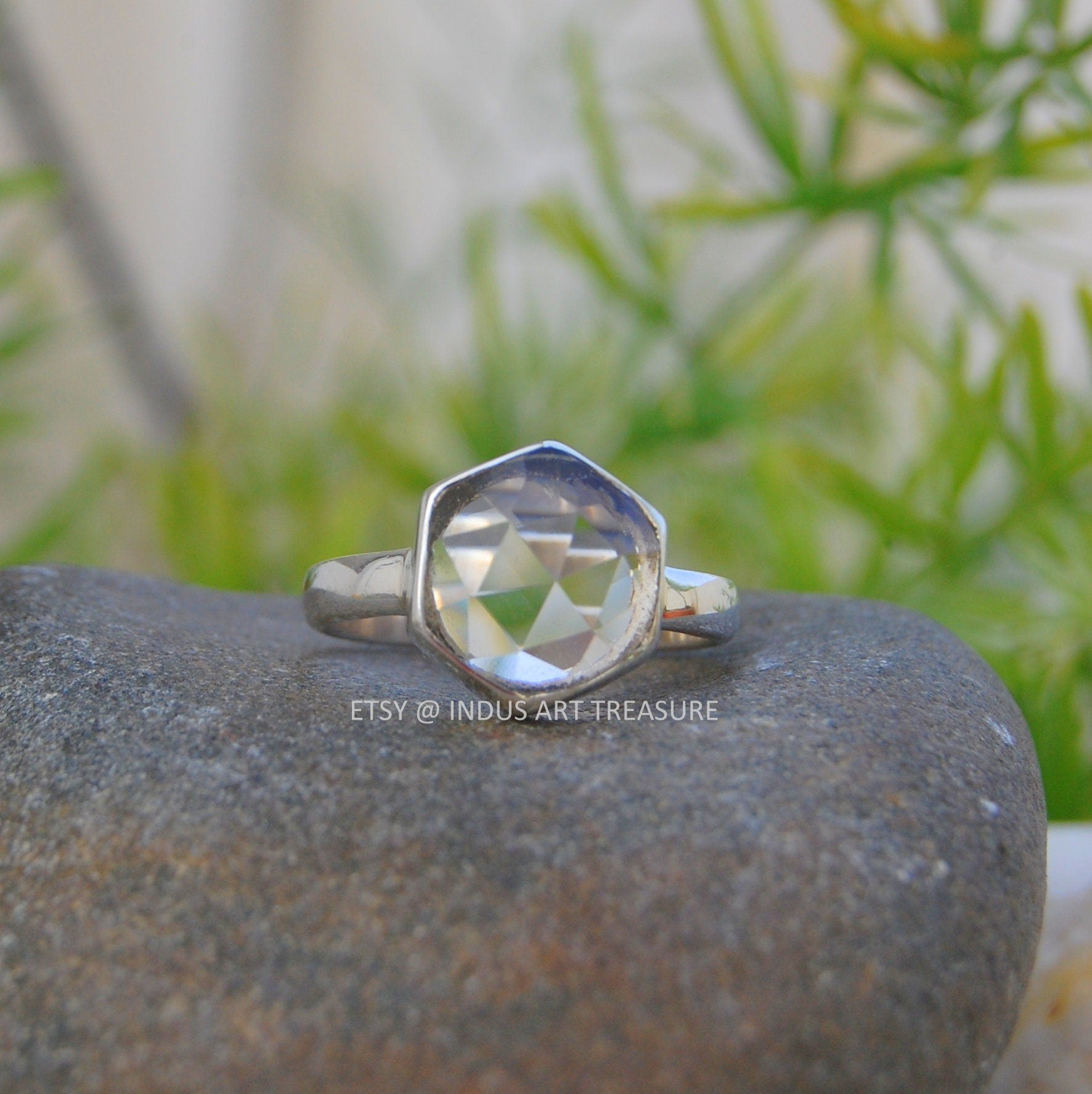 Product : Natural Clear Crystal Handmade Ring/ 925 Sterling Silver Ring/ April's Birthstone Ring/ Mood Ring/ Unique Gift Ring/ Unisex Ring/ Gift for luck/ Anniversary Gift/ Birthday Gift Jewelry/ Handmade Indian Ring/ Grey Gemstone Ring/ Statement Ring.