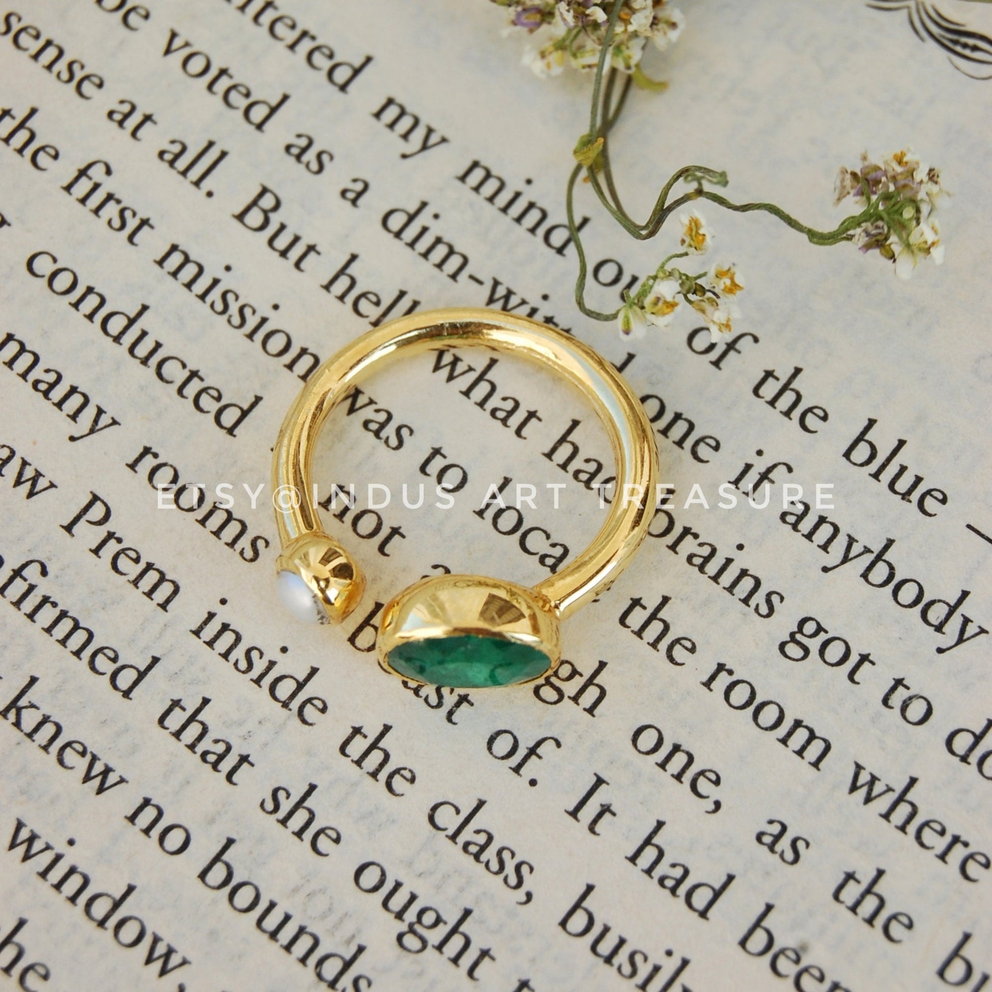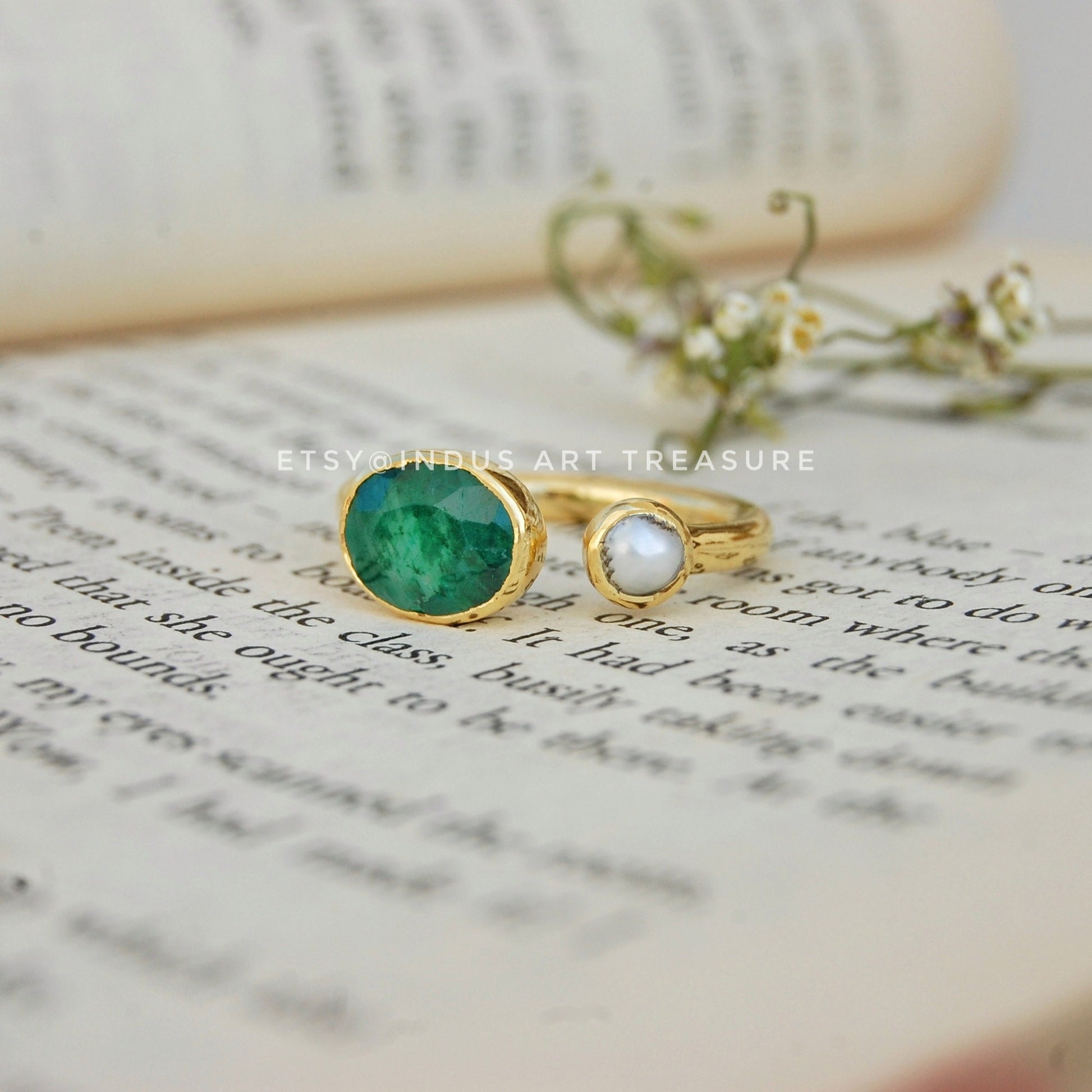 Product : Natural Emerald- Pearl Dainty Gold Ring for Special One/ May Birthstone/ Gold Plated 925 Sterling Silver Ring/ Rings for Women/ Green Stone Ring/Emerald Ring Jewelry/ Birthday Gift for Her/ Gift Ring for Mum/ Anniversary Gift.