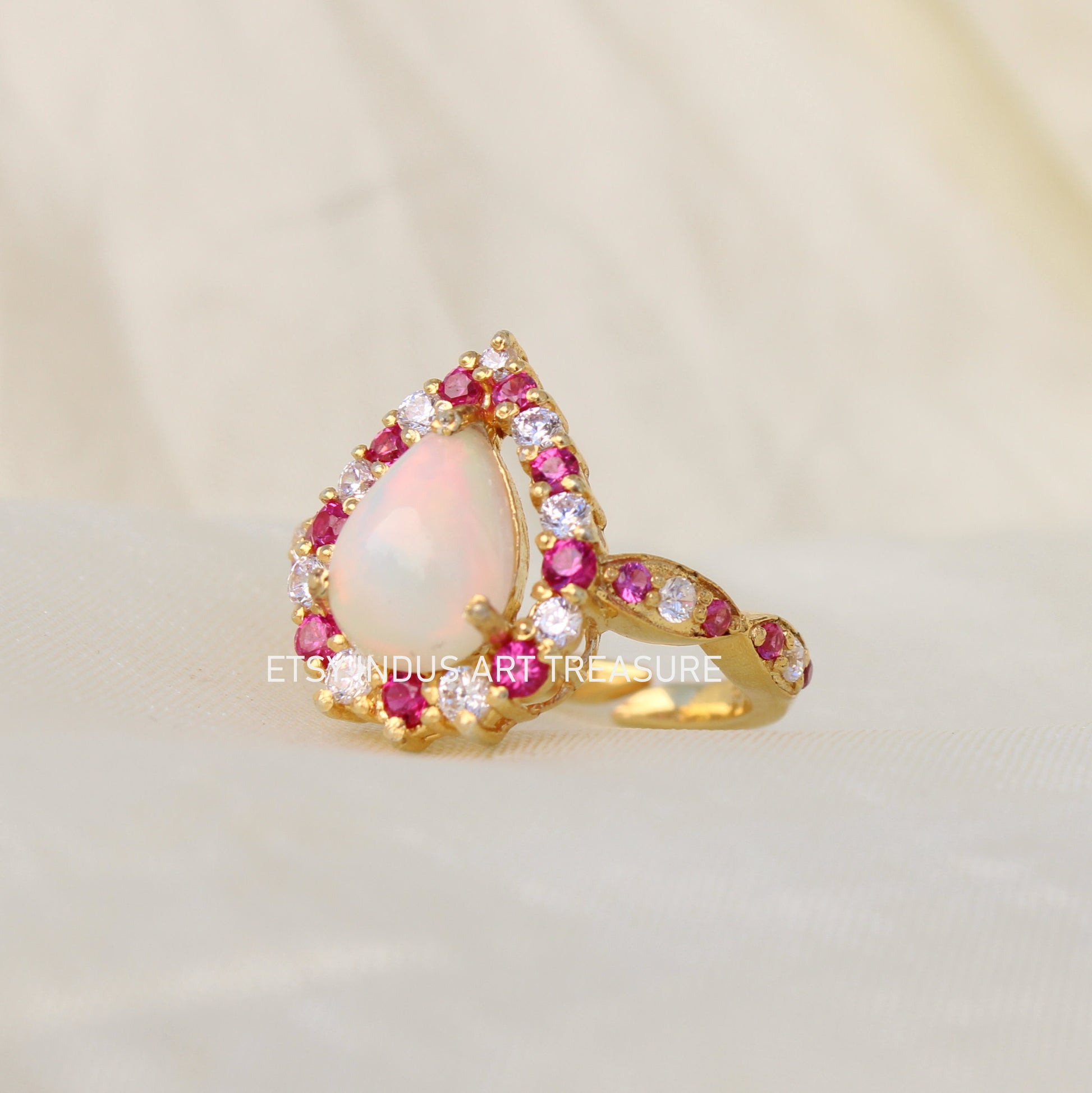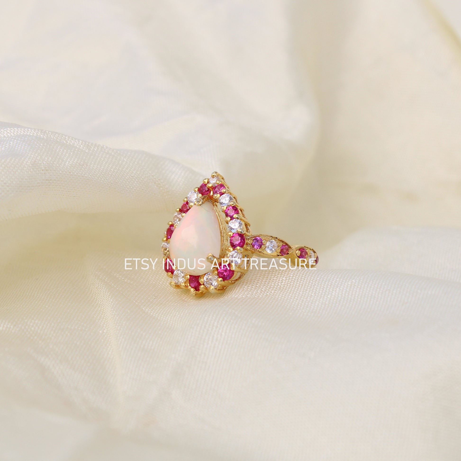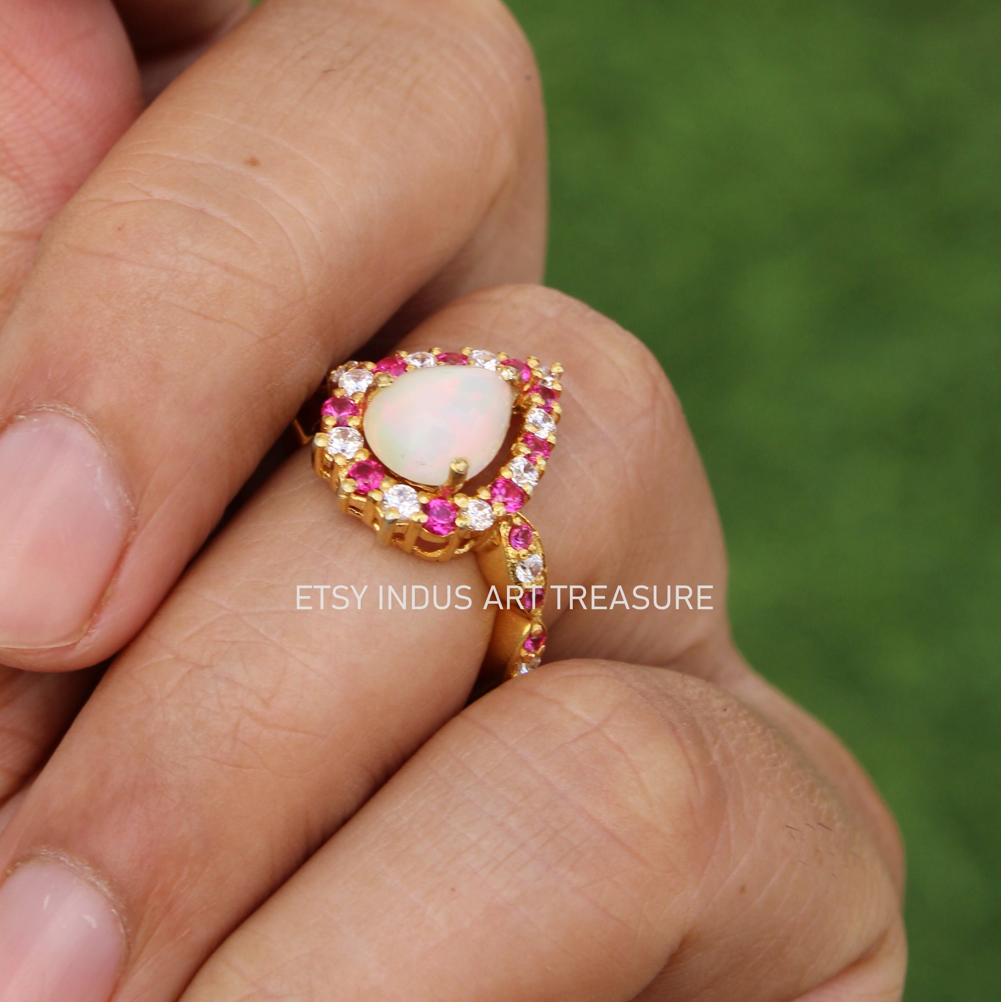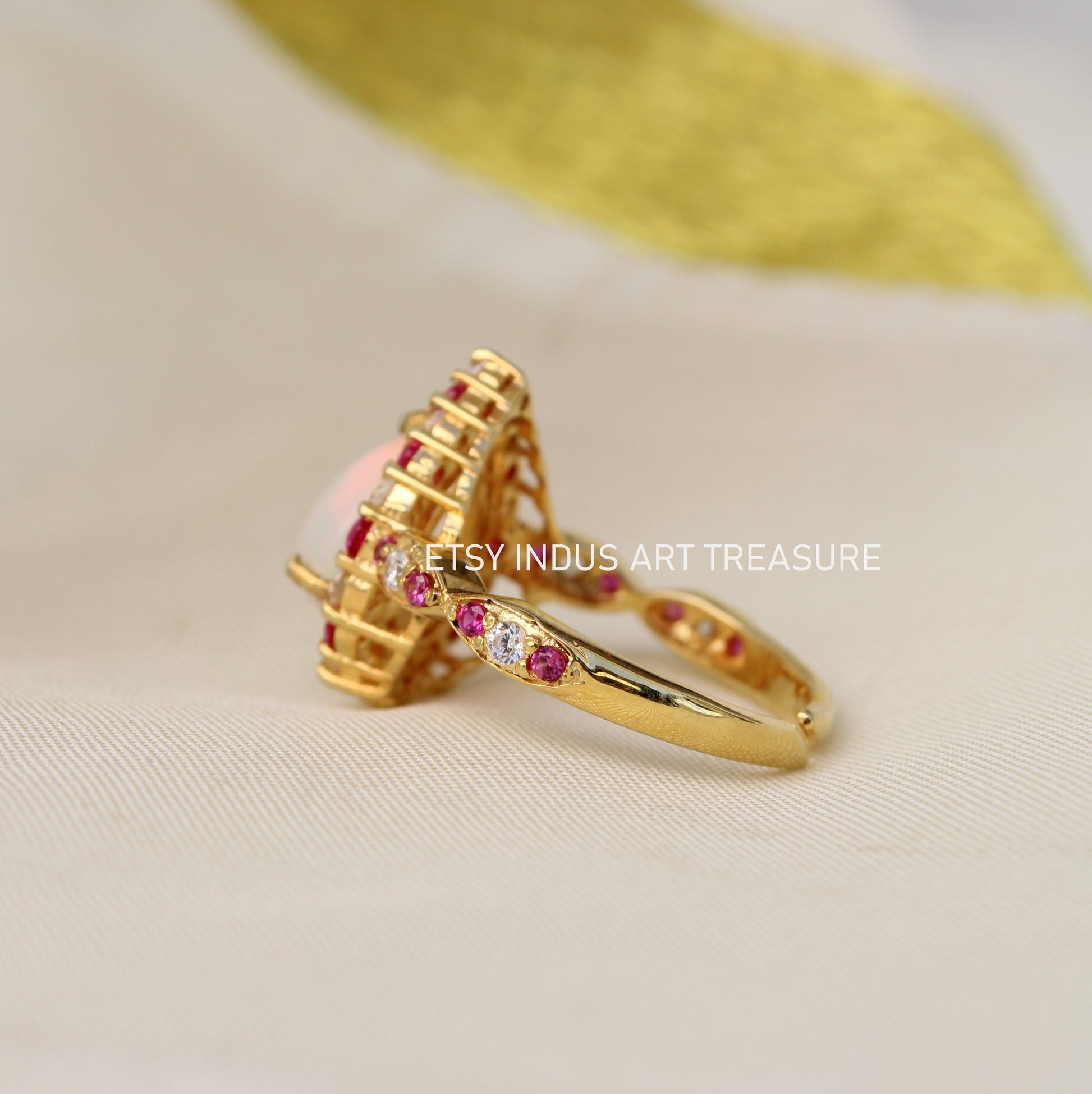 Product : Natural Ethiopian Opal- Tourmaline Dainty Gold Ring for Special One/ October Birthstone Ring / Gold Plated 925 Sterling Silver Ring/ Bridal Ring for Her/ Moonstone Ring Jewelry/ Multi Stone Rainbow Ring, Birthday Gift for Her/ Gift Ring for Mum/ Anniversary Gift.