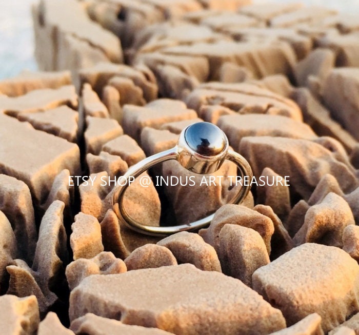 Product : Natural Hematite Handmade Dainty Ring for Her/ 925 Sterling Silver Ring/ Black Gemstone Ring/ Indian Handmade Jewelry/ Purity Ring/ Hematite Rings/Gift for Her.