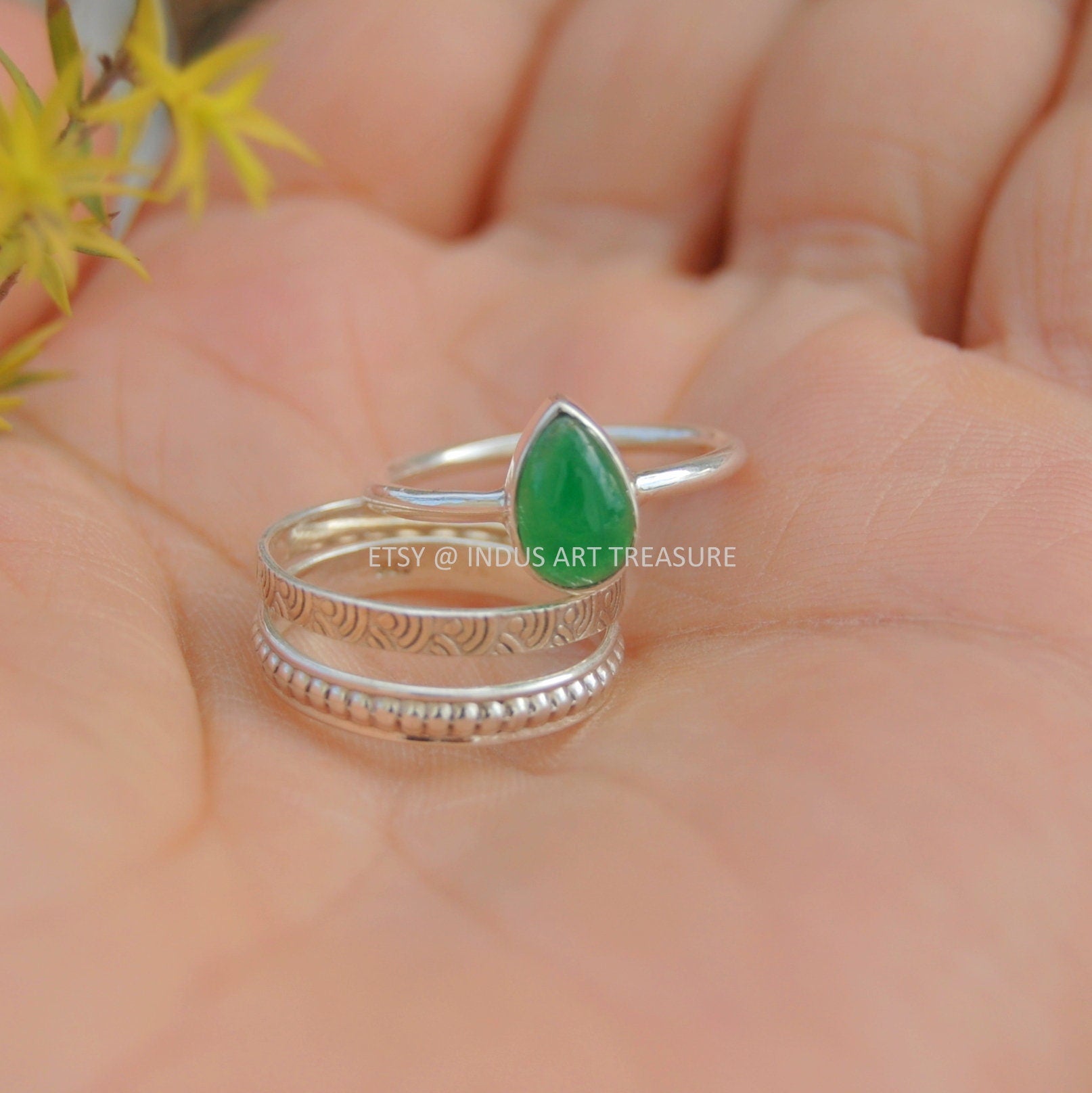 Product : Natural Jade Stacking Ring Set, 925 Sterling Silver Rings for Women, Set of Three Rings, March Birthstone, Gifts for Women, Green Stone Ring, Stacking Ring Set, Anniversary Gift Ring, Birthday Gift for Her.