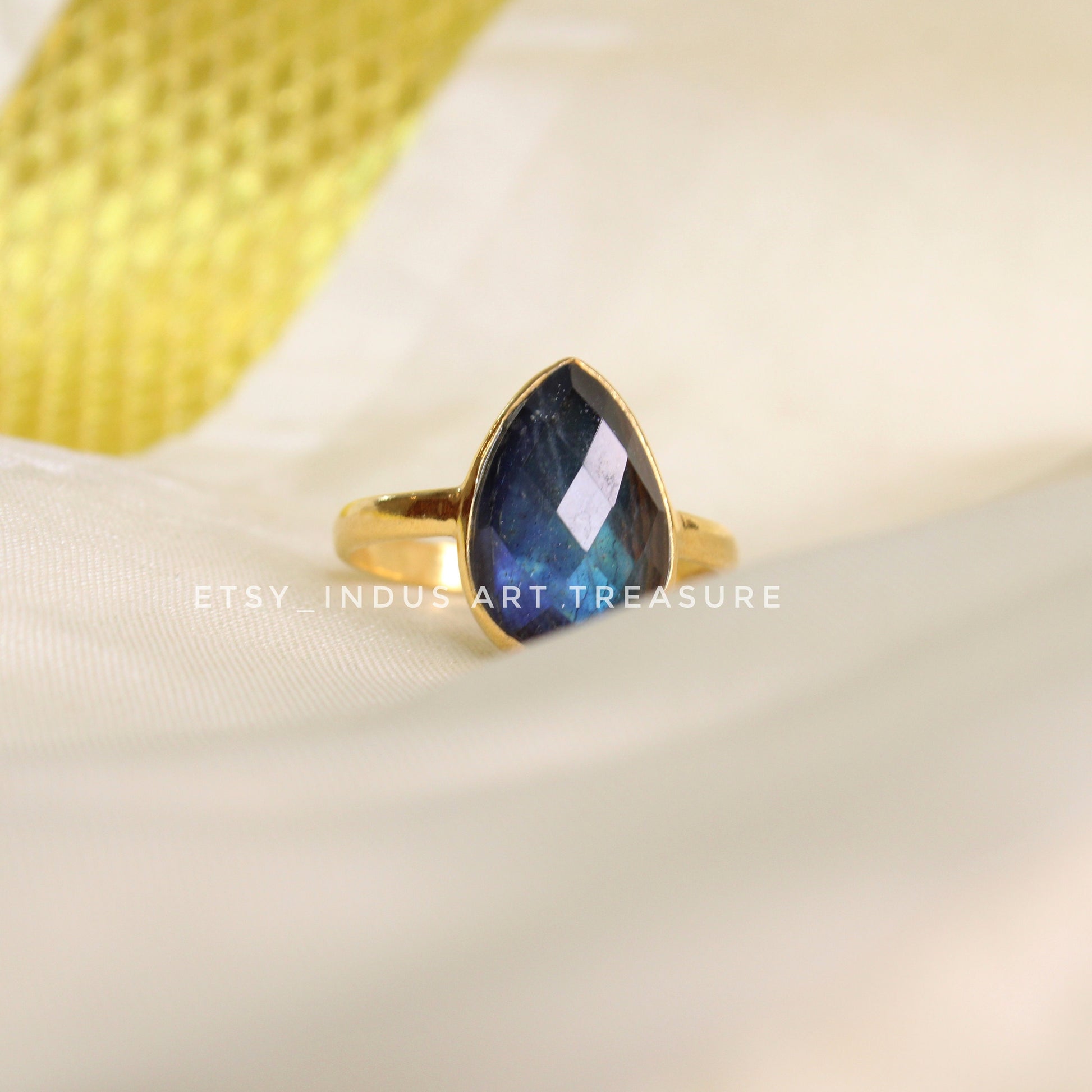Product : Natural Labradorite Gold Statement Ring, Gold Plated 925 Sterling Silver Ring, Statement Ring, Wedding Ring Jewelry, Engagement Ring, Propose Ring, Fine Gemstone Ring, Blue Fire Gemstone Ring, Anniversary Gift Ring.