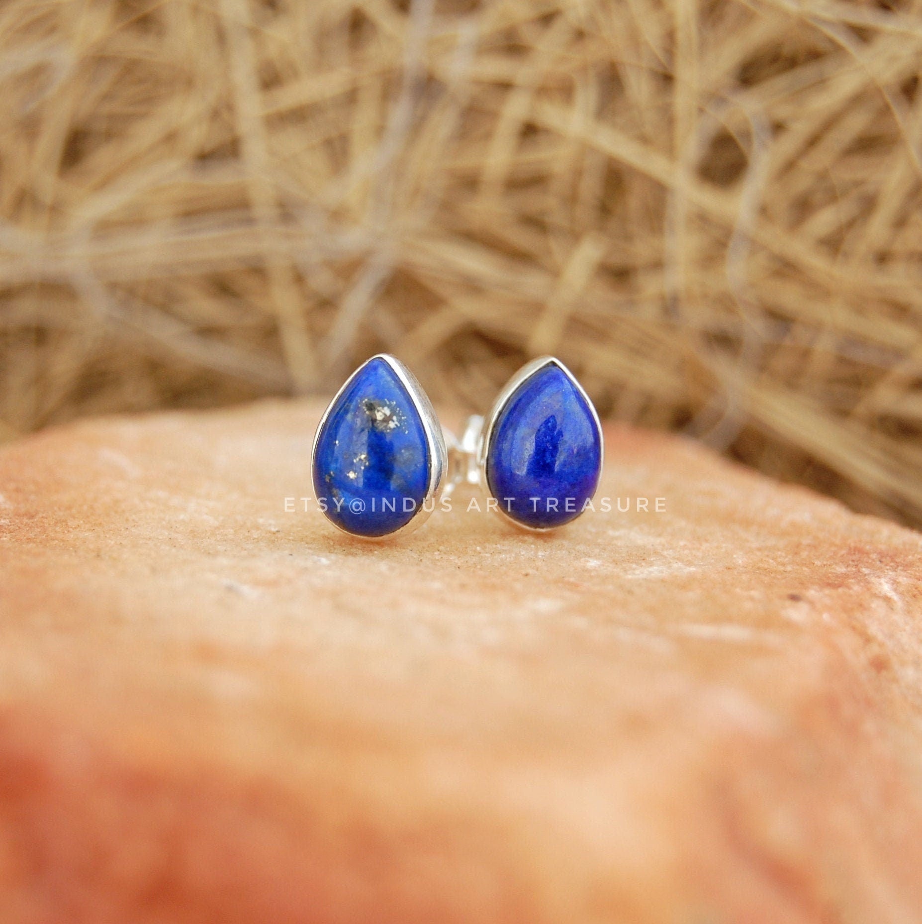 Product : Natural Lapis Luzuli Stud Earrings/ Lapis Jewelry/ 925 Sterling Silver Post Earrings/ September Birthstone Jewelry/ Blue Stud Earrings / Anniversary Gift for Her/ Dainty Earrings/ Unisex Stud Earrings.