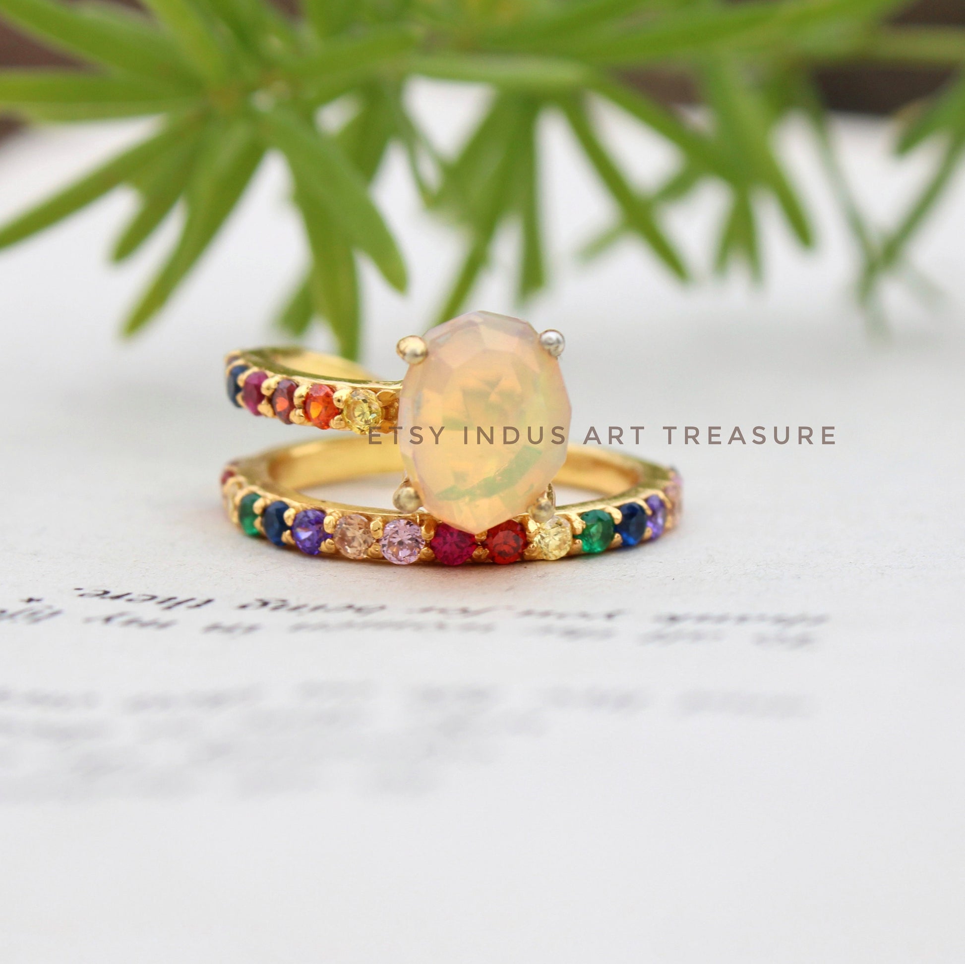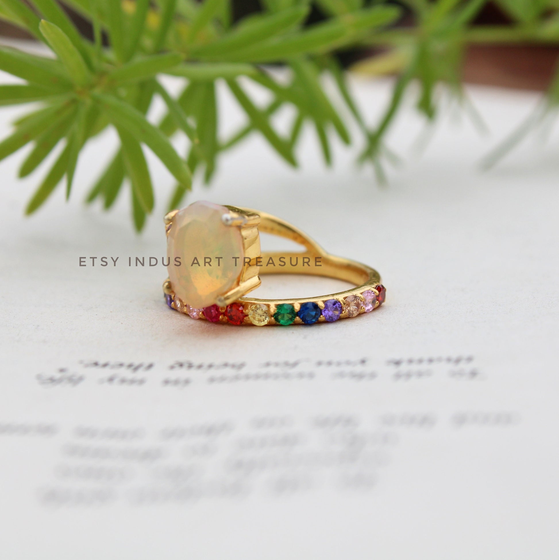 Product : Natural Opal Multi Stone Dainty Gold Ring for Special One/ Birthstone Ring / Gold Plated 925 Sterling Silver Ring/ Bridal Ring for Her/ Opal Ring Jewelry/ Multi Stone Rainbow Ring, Birthday Gift for Her/ Gift Ring for Mum/ Anniversary Gift.