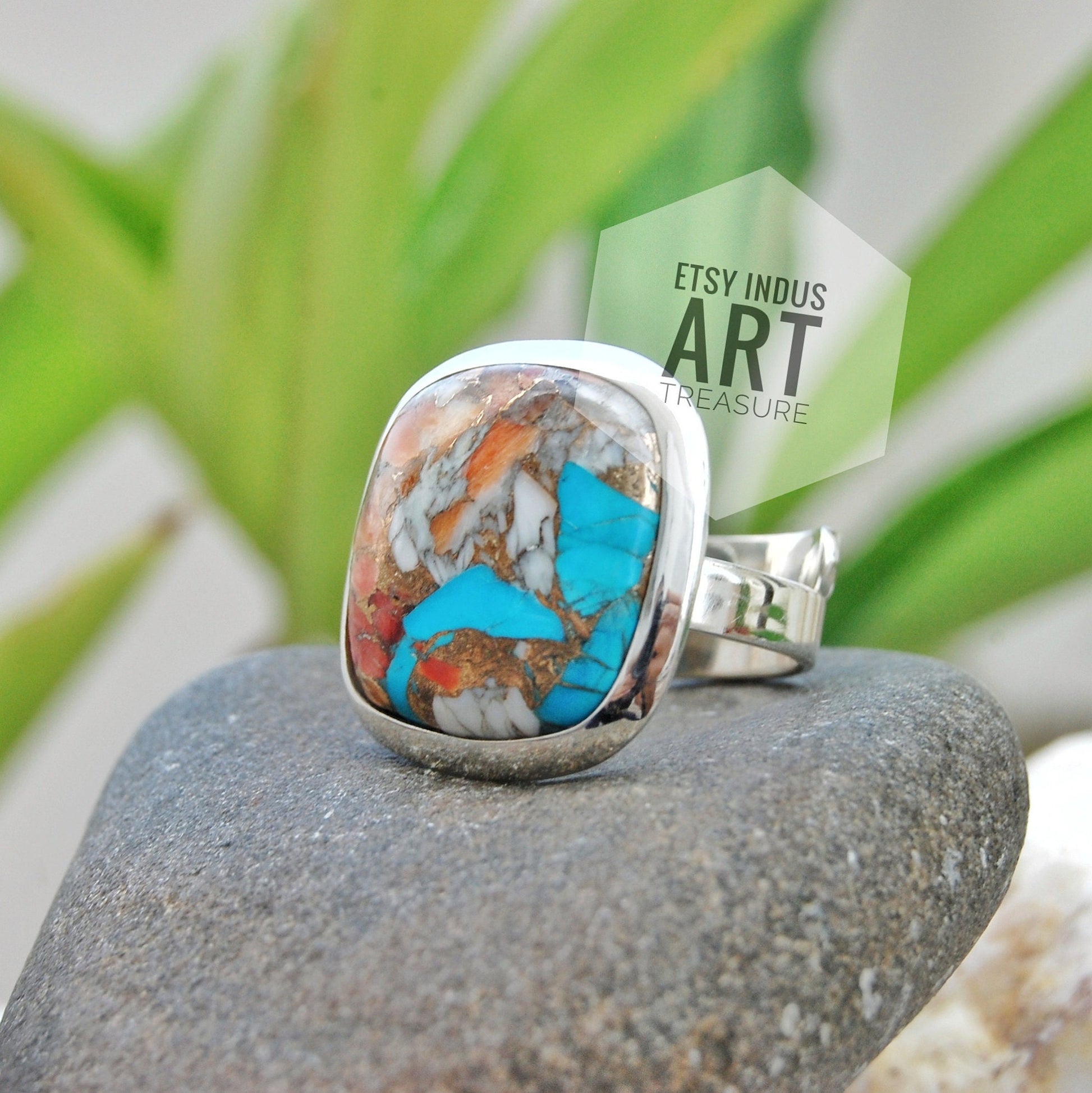 Product : Natural Oyster Copper Turquoise Ring, 925 Sterling Silver Ring, Handmade Ring, December Birthstone, Statement Ring, Rings for Women, Spiny Oyster turquoise Ring, Blue Stone Ring, Turkish Ring, Gifts for Women, Wedding Jewelry.
