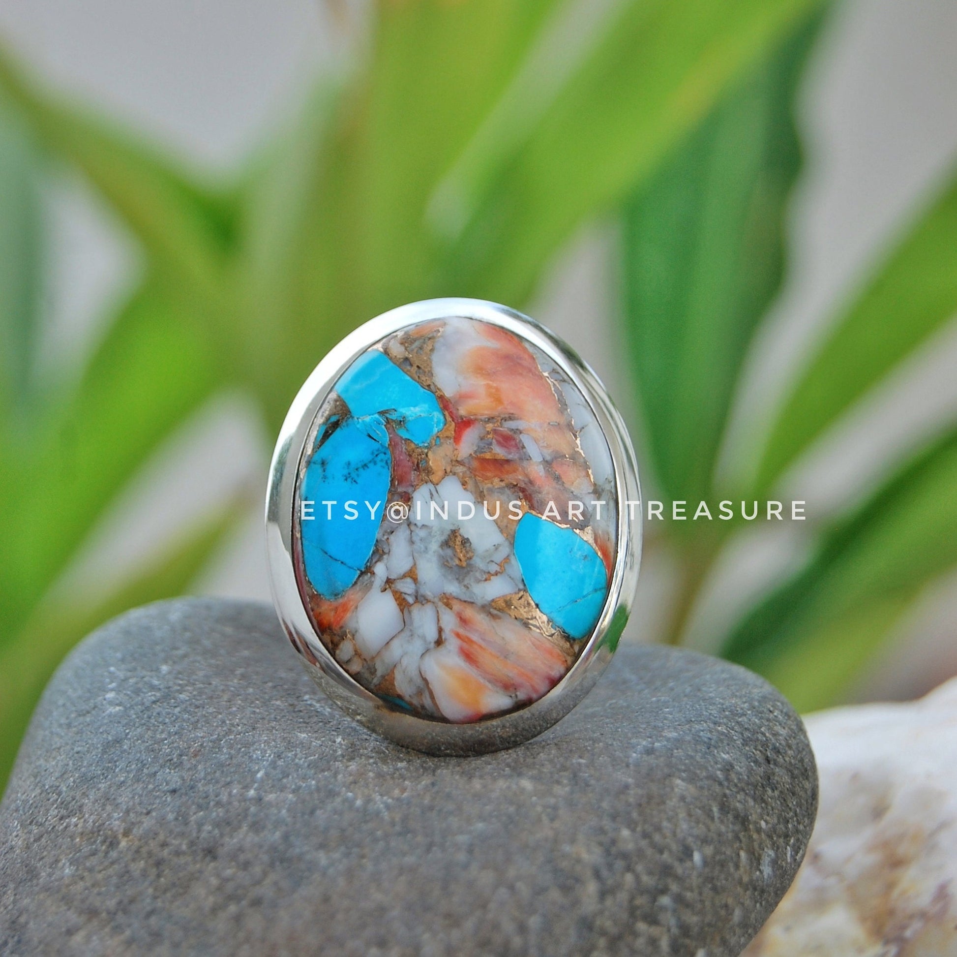 Product : Natural Oyster Copper Turquoise Ring, 925 Sterling Silver Ring, Handmade Ring, December Birthstone, Statement Ring, Rings for Women, Spiny Oyster turquoise Ring, Blue Stone Ring, Turkish Ring, Gifts for Women, Wedding Jewelry.