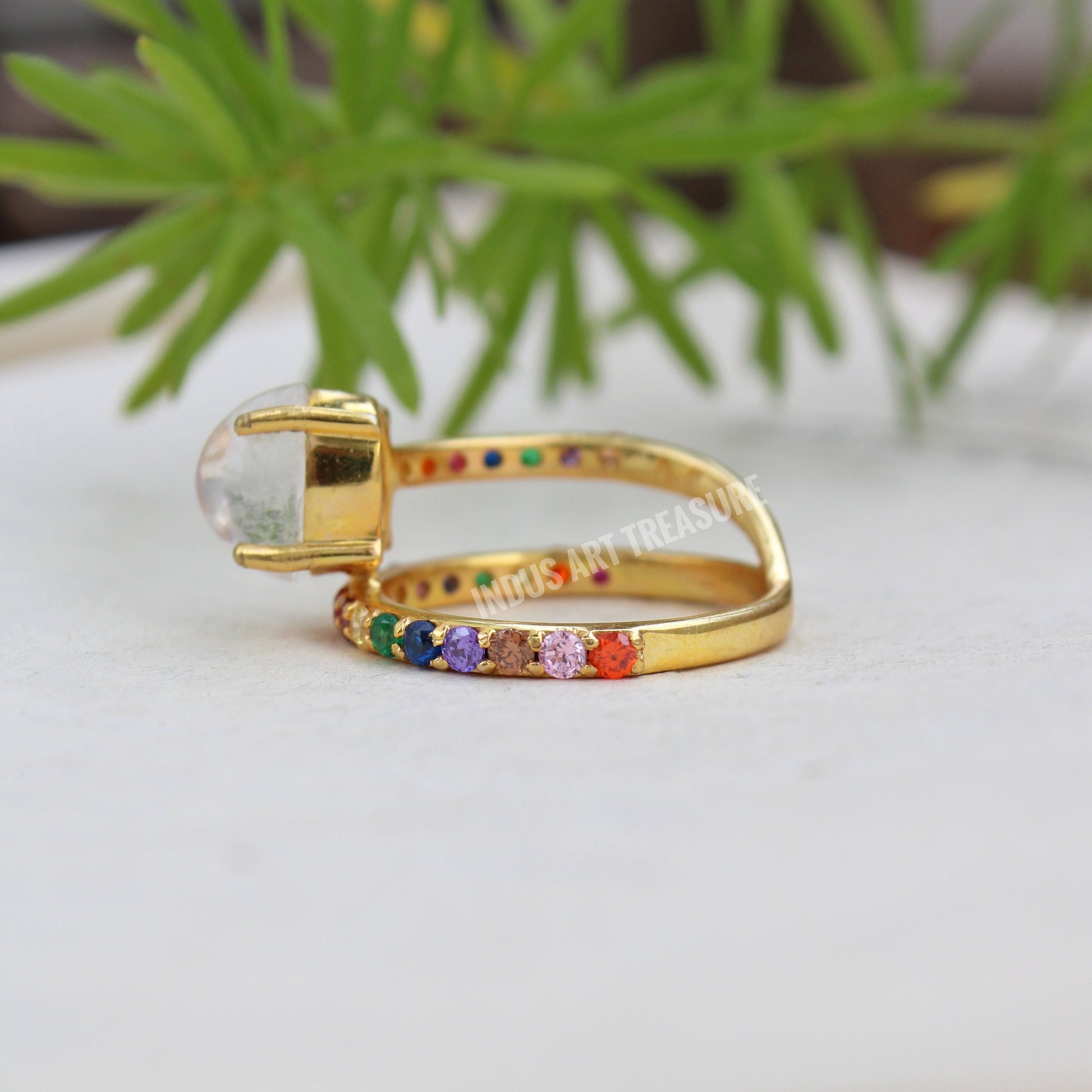 Product : Natural Rainbow Moonstone Multi Stone Dainty Gold Ring for Special One/ June Birthstone Ring / Gold Plated 925 Sterling Silver Ring/ Bridal Ring for Her/ Moonstone Ring Jewelry/ Multi Stone Rainbow Ring, Birthday Gift for Her/ Gift Ring for Mum/ Anniversary Gift.