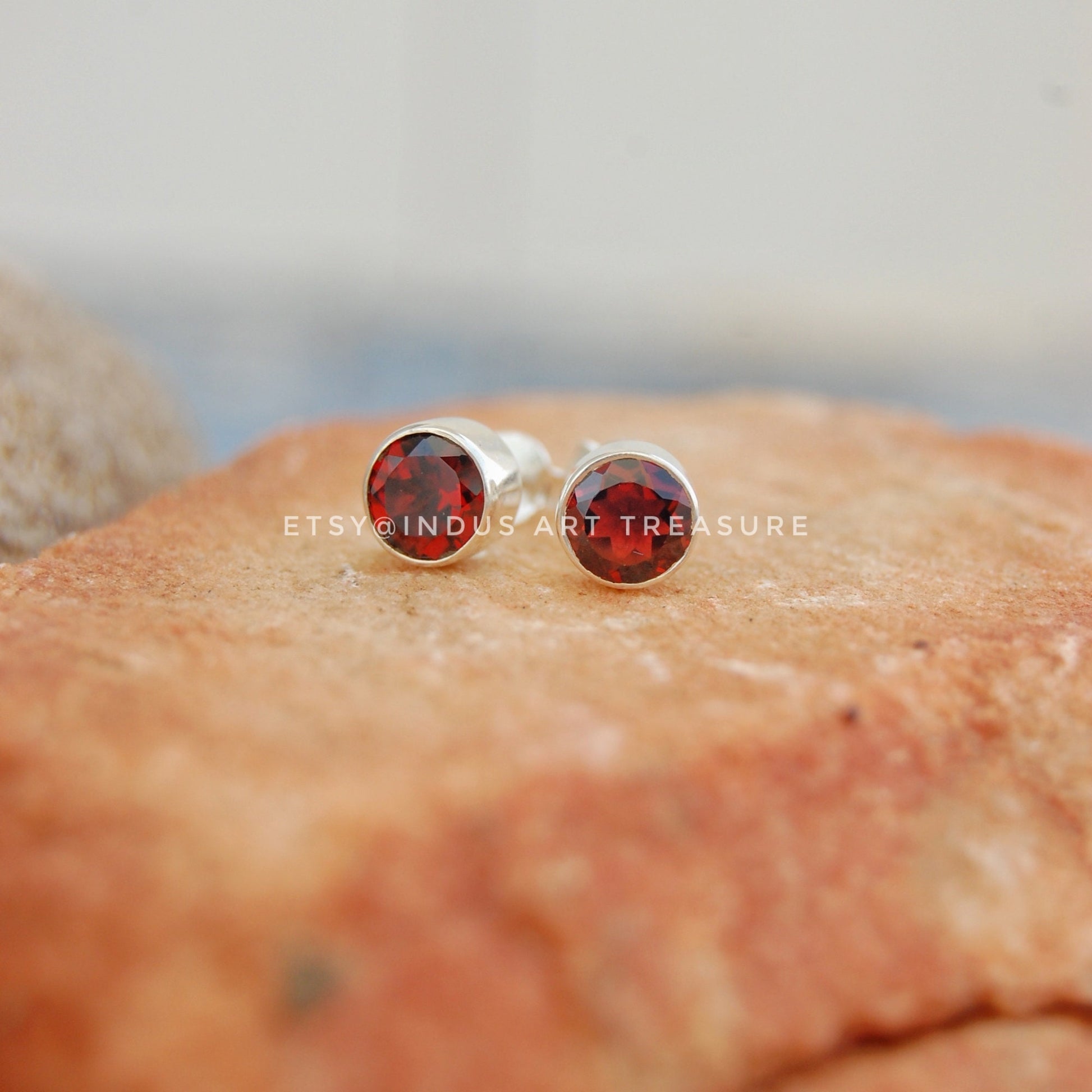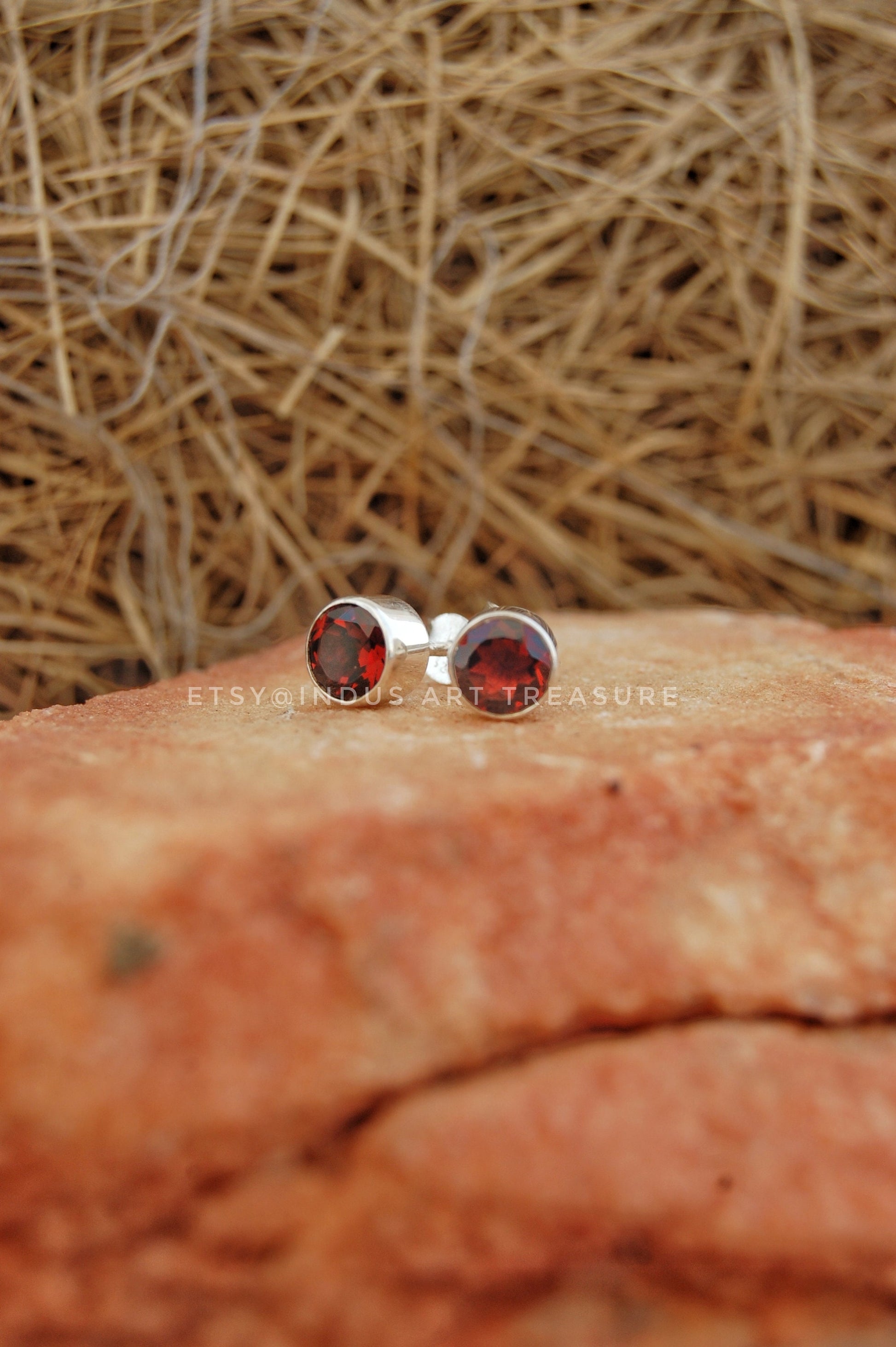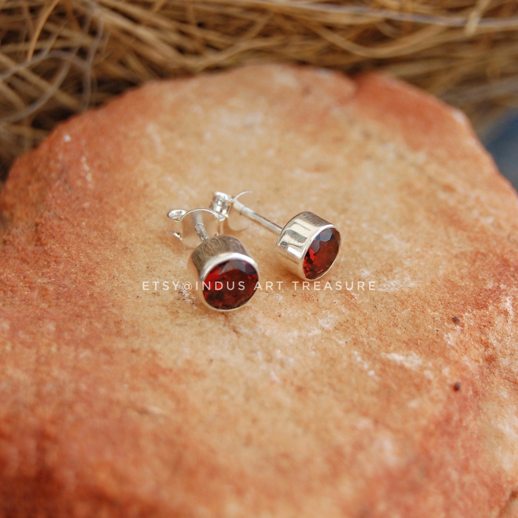 Product : Natural Red Garnet Stud Earrings/ 925 Sterling Silver Post Earrings/ January Birthstone/ Red Stone Studs/ Handmade Indian Jewelry/ Birthday Gift for Love/ Dainty Earrings/ Unisex Stud Earrings.