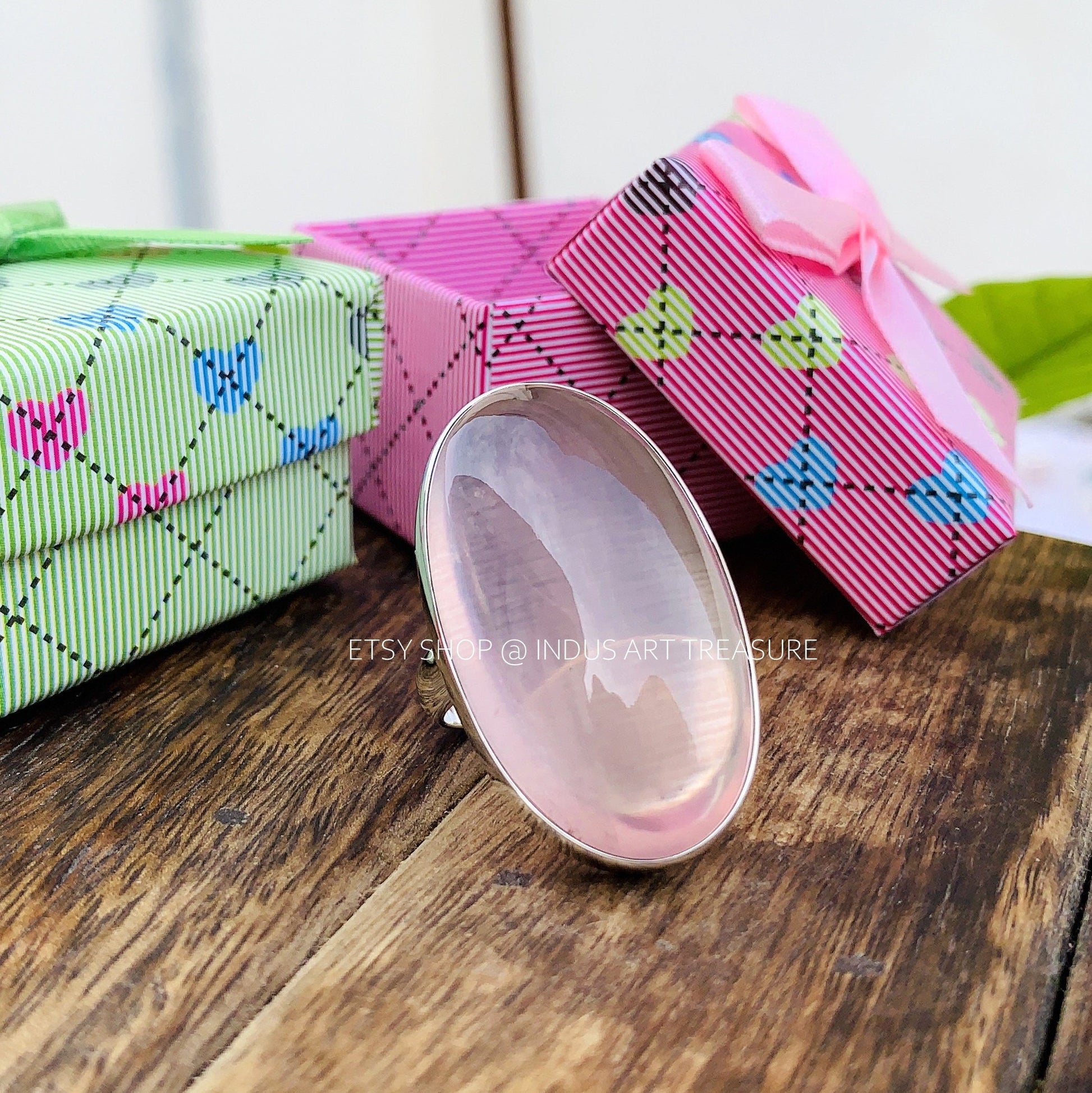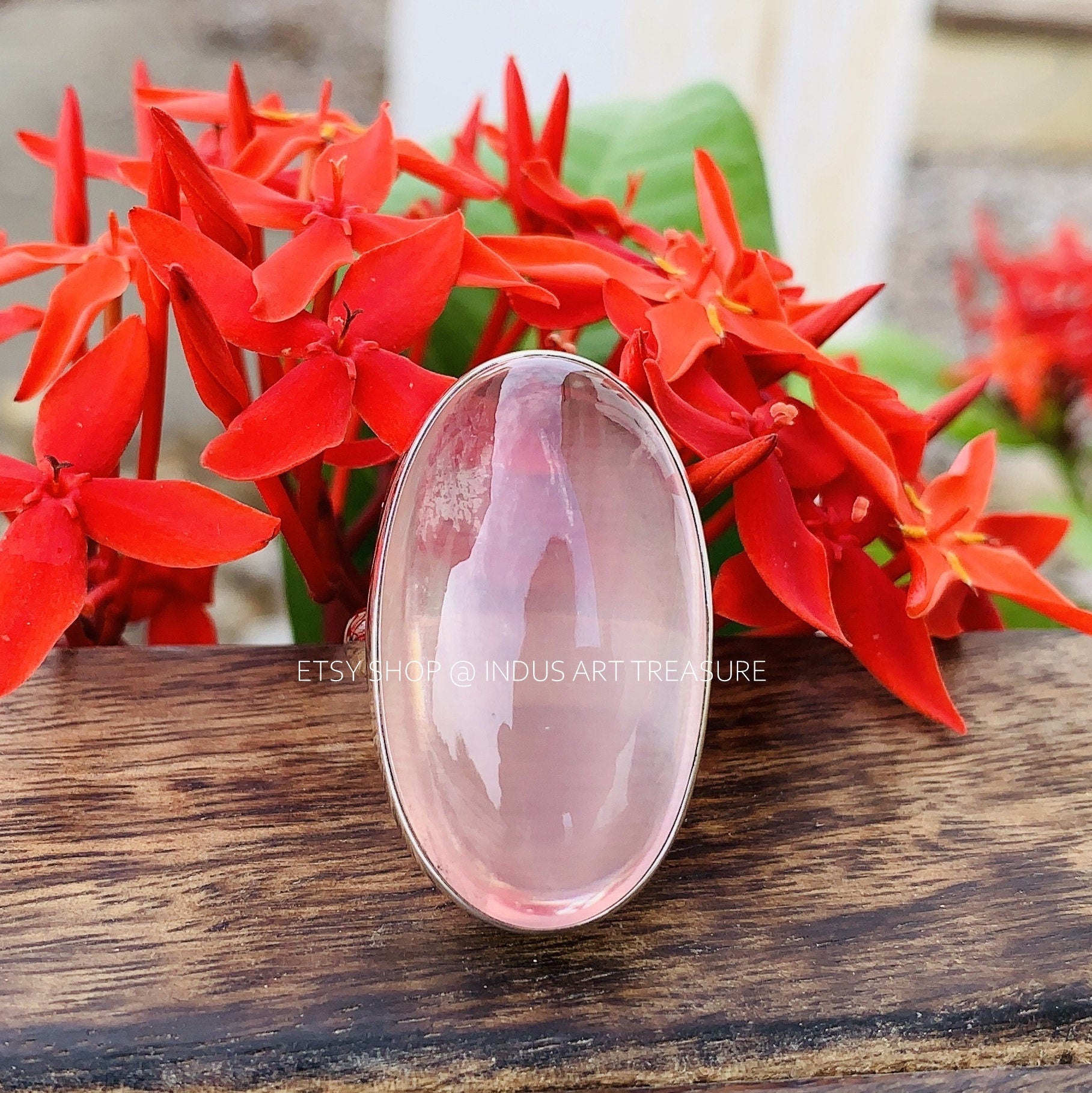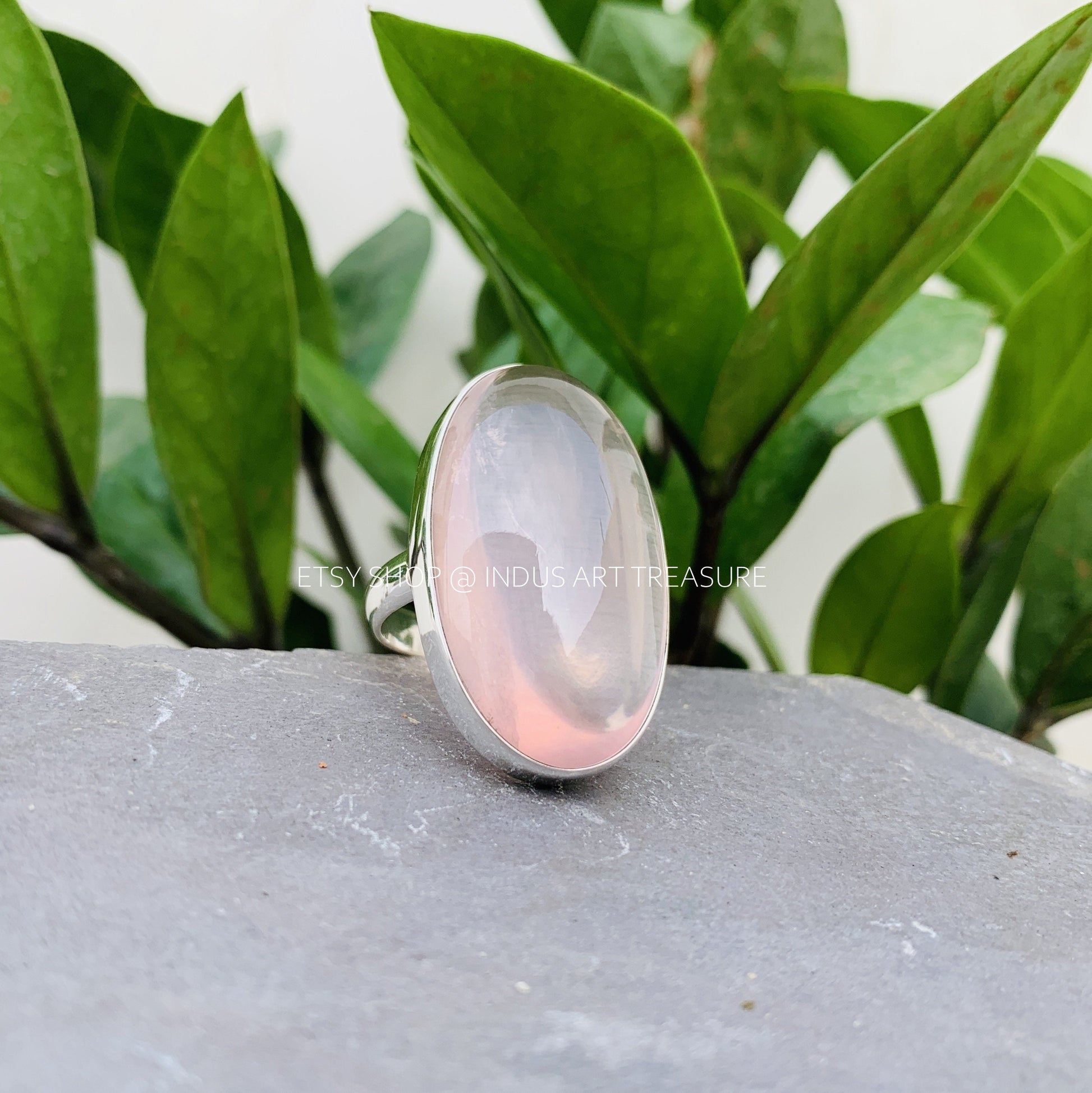 Natural Rose Quartz Ring, 925 Sterling Silver Ring,