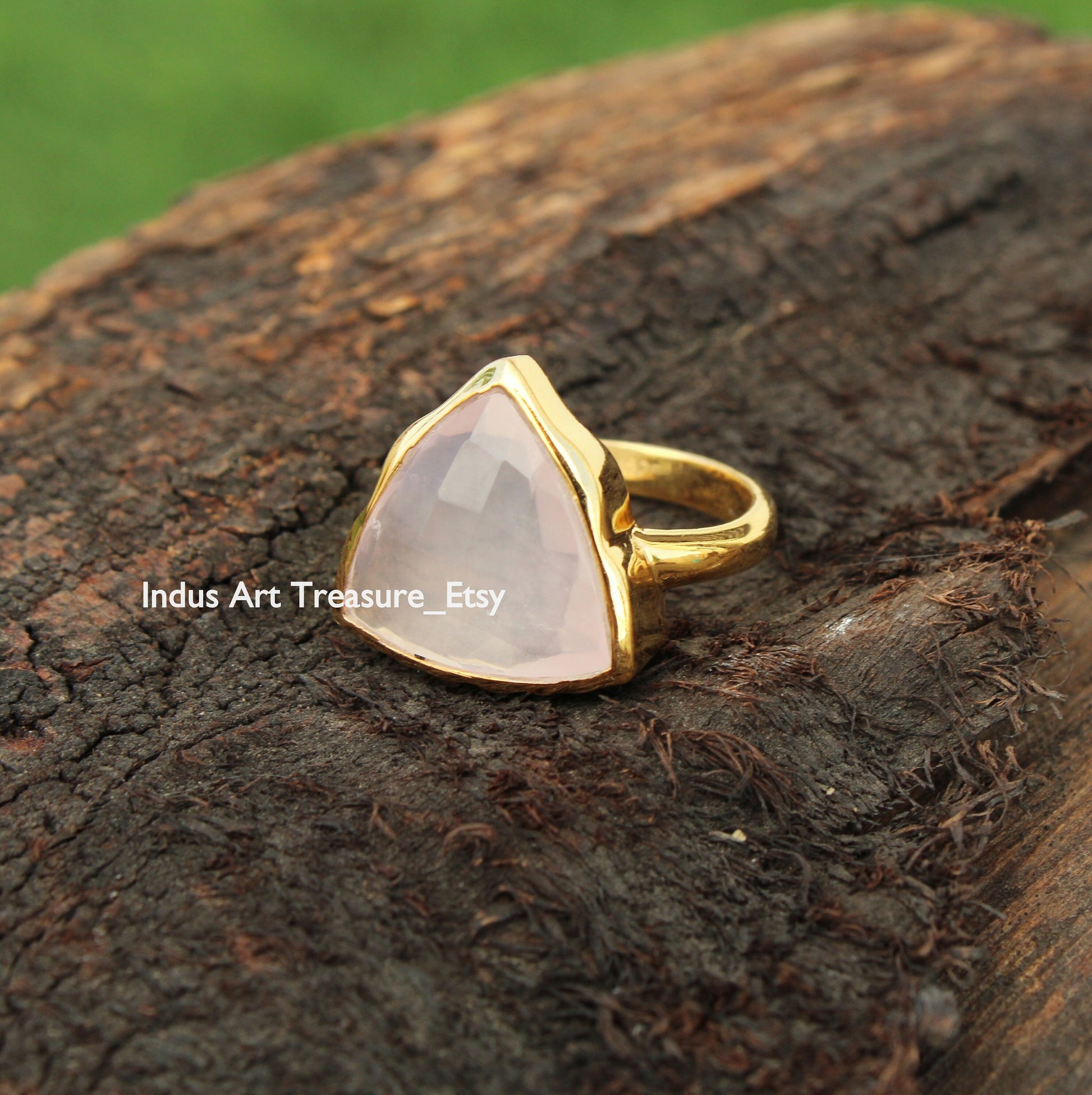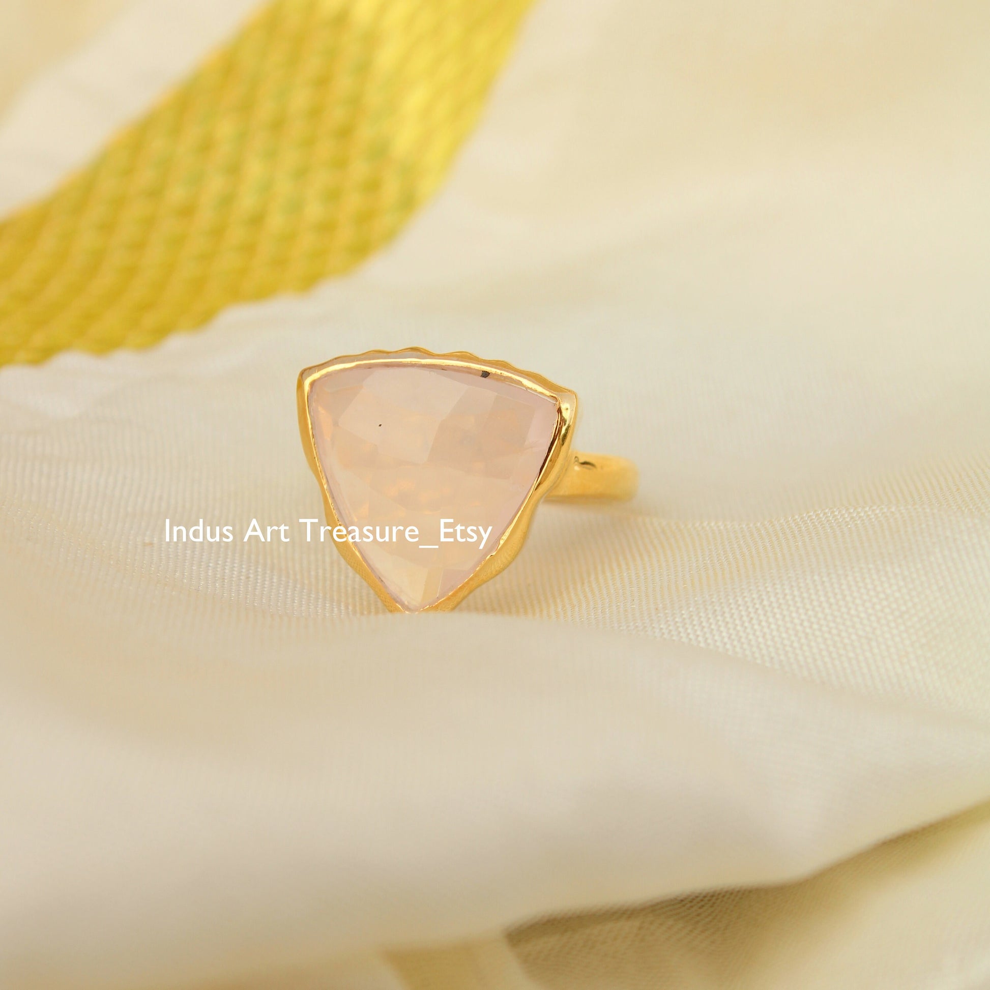 Rose Quartz Triangle Checker Cut 18k Gold Plated Ring