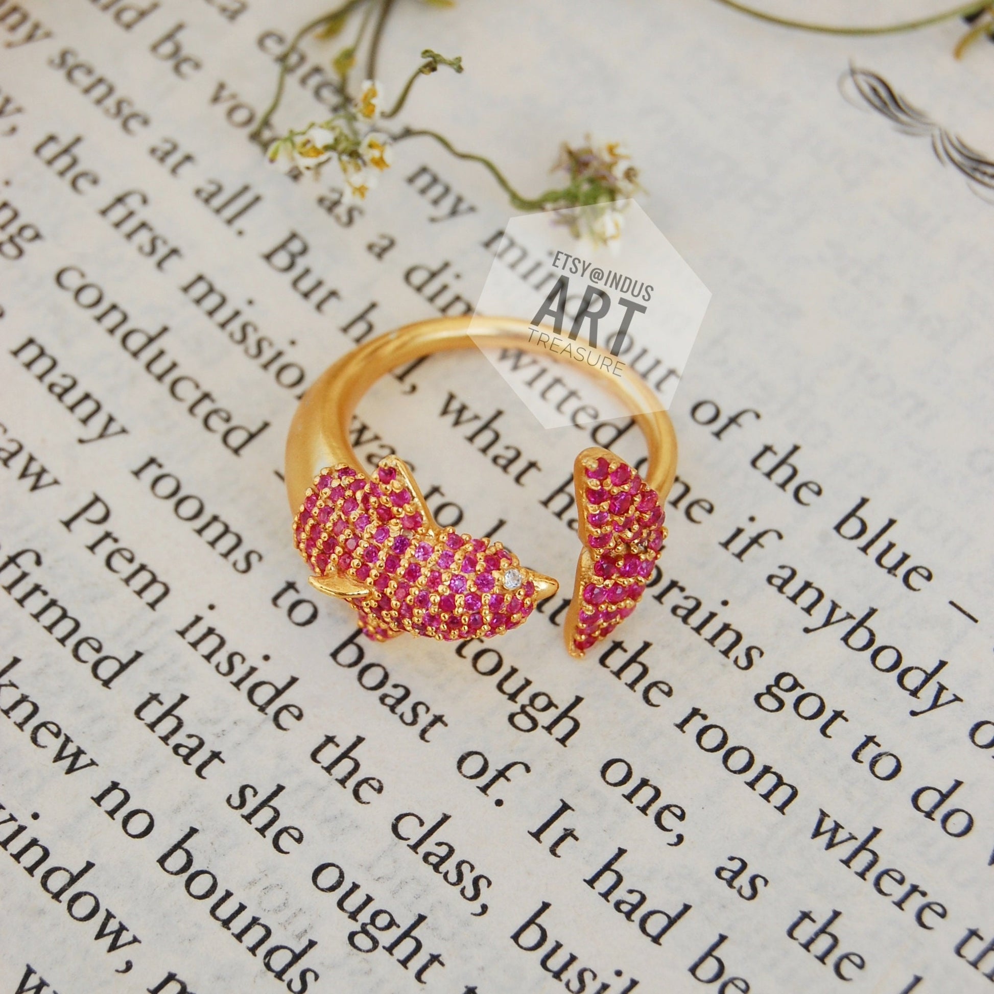 Product : Natural Ruby Dainty Gold Ring, Wrap Around Ring, Ocean Ring, Anniversary Gift Ring, Dolphin Ring, Red Stone Ring, Gifts for Her, Gold Plated 925 Sterling Silver Delicate Ring, Dainty Gold Ring, Wedding Ring Jewelry, Fish Ring, Propose Ring.