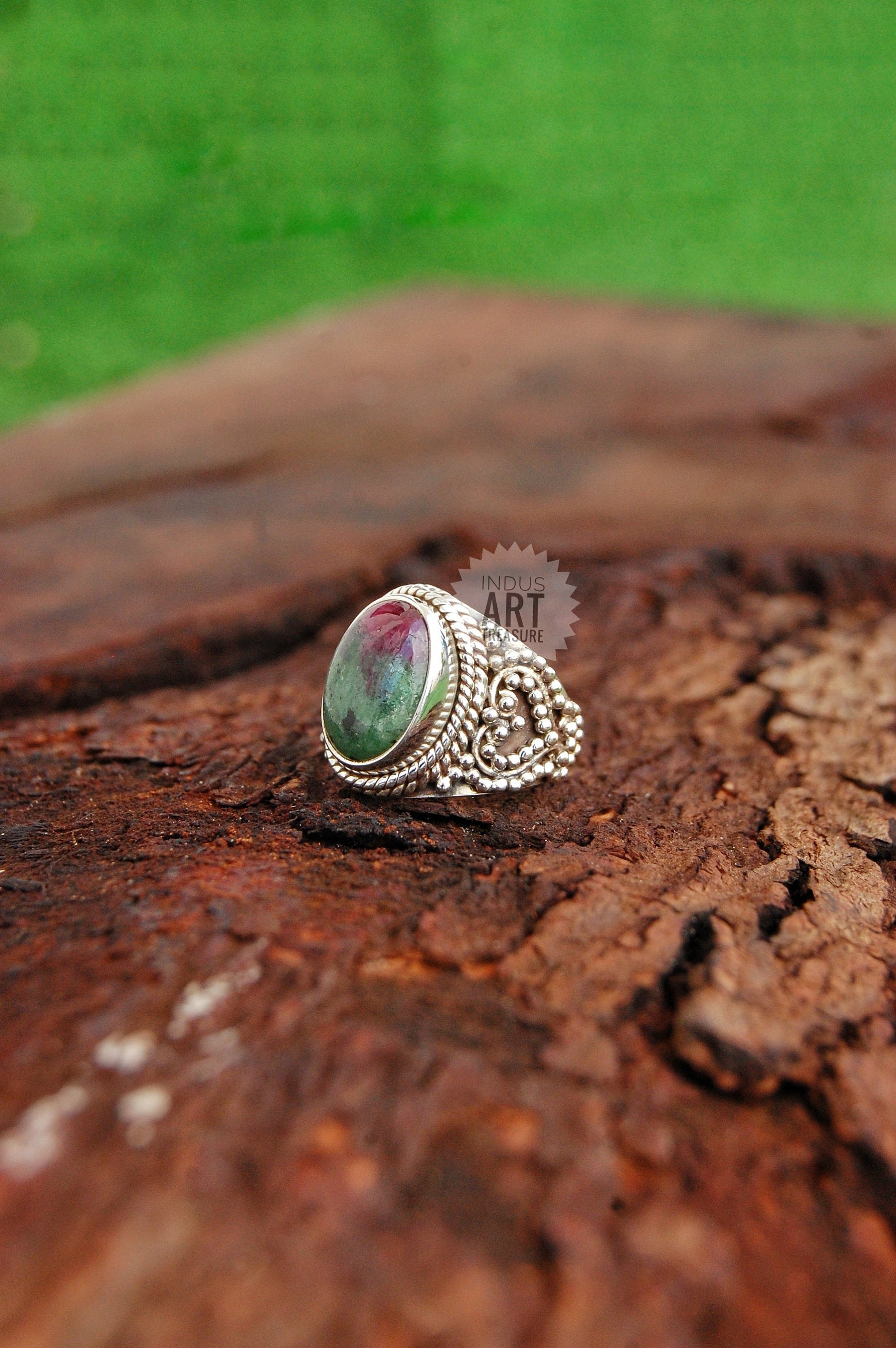 Product : Natural Natural Ruby Zoisite Handmade Dainty Silver Ring for Women/ Green and Red Stone Ring/ 925 Sterling Silver Ring/ July Birthstone Ring for All/ Healing Stone Ring/ Ruby Zoisite Jewelry/ Birthday Gift for Her/ Party Wear Ring / Anniversary Gift Ring.