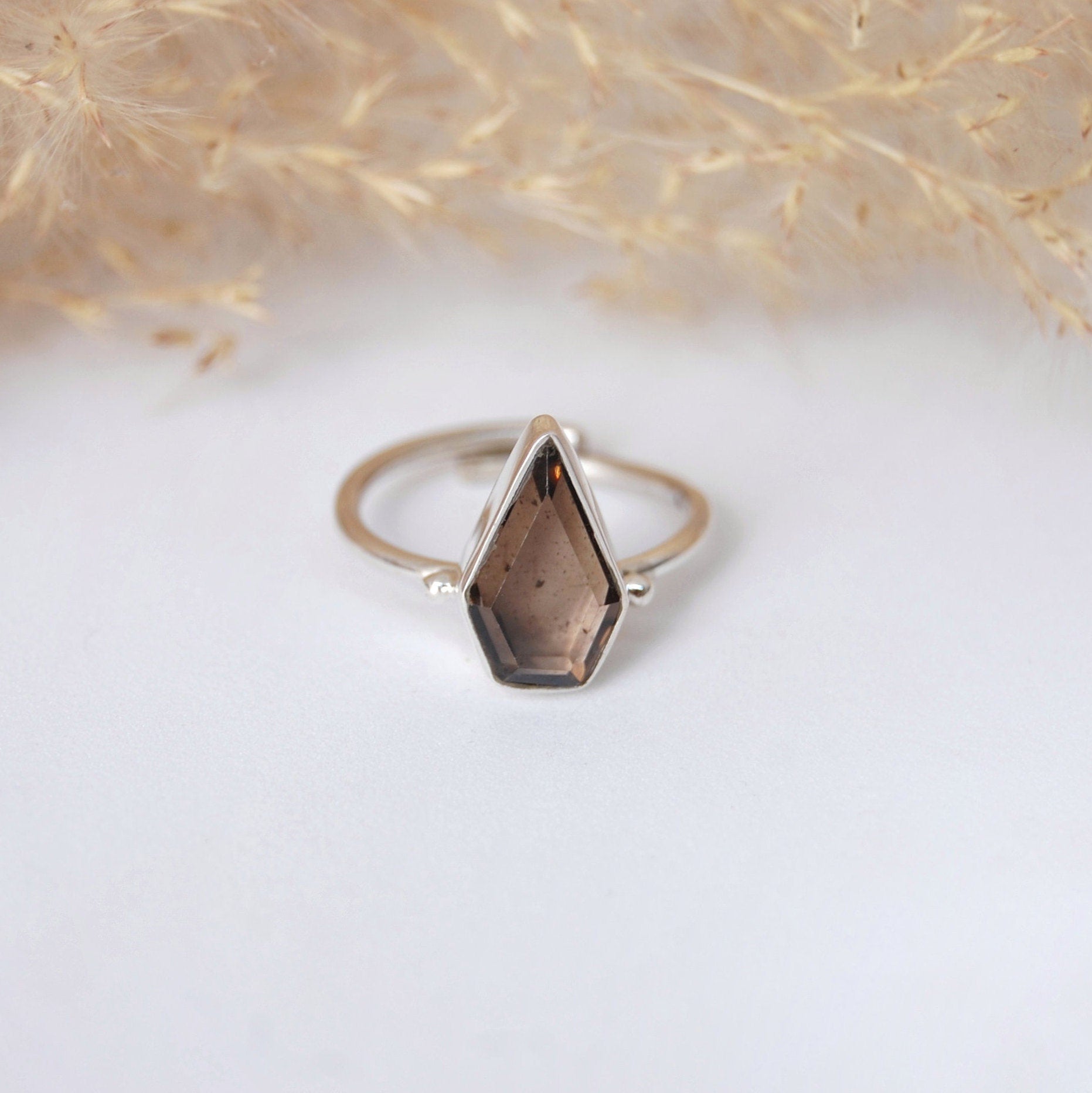 Product : Beautiful Smoky Quartz Handcrafted Kite Ring.