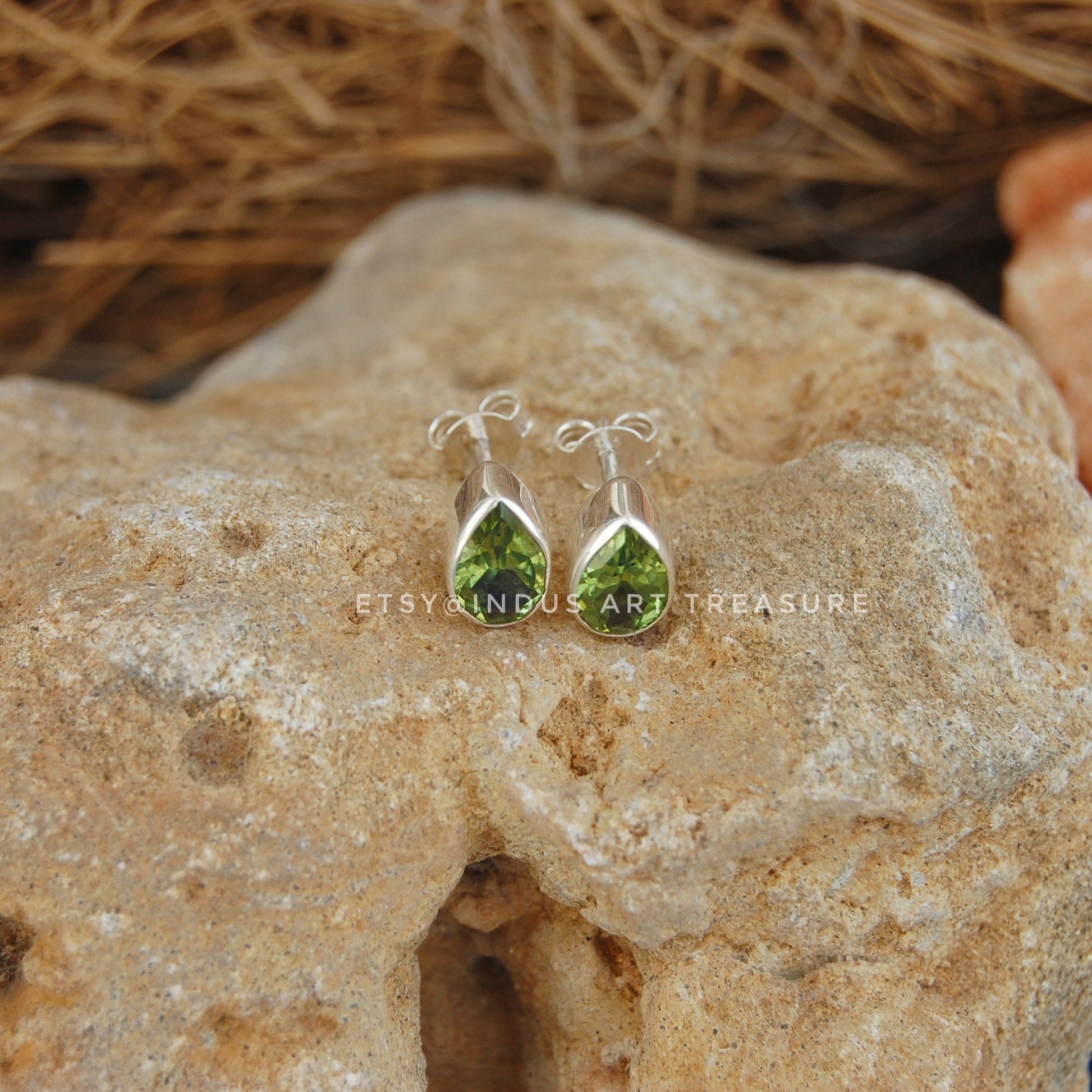Product : Natural Olive Green Peridot Stud Earrings/ 925 Sterling Silver Post Earrings/ August Birthstone/ Olive Green Stone Studs / Handmade Indian Jewelry/ Gifts for Her/ Minimalist Earrings/ Unisex Stud Earrings.