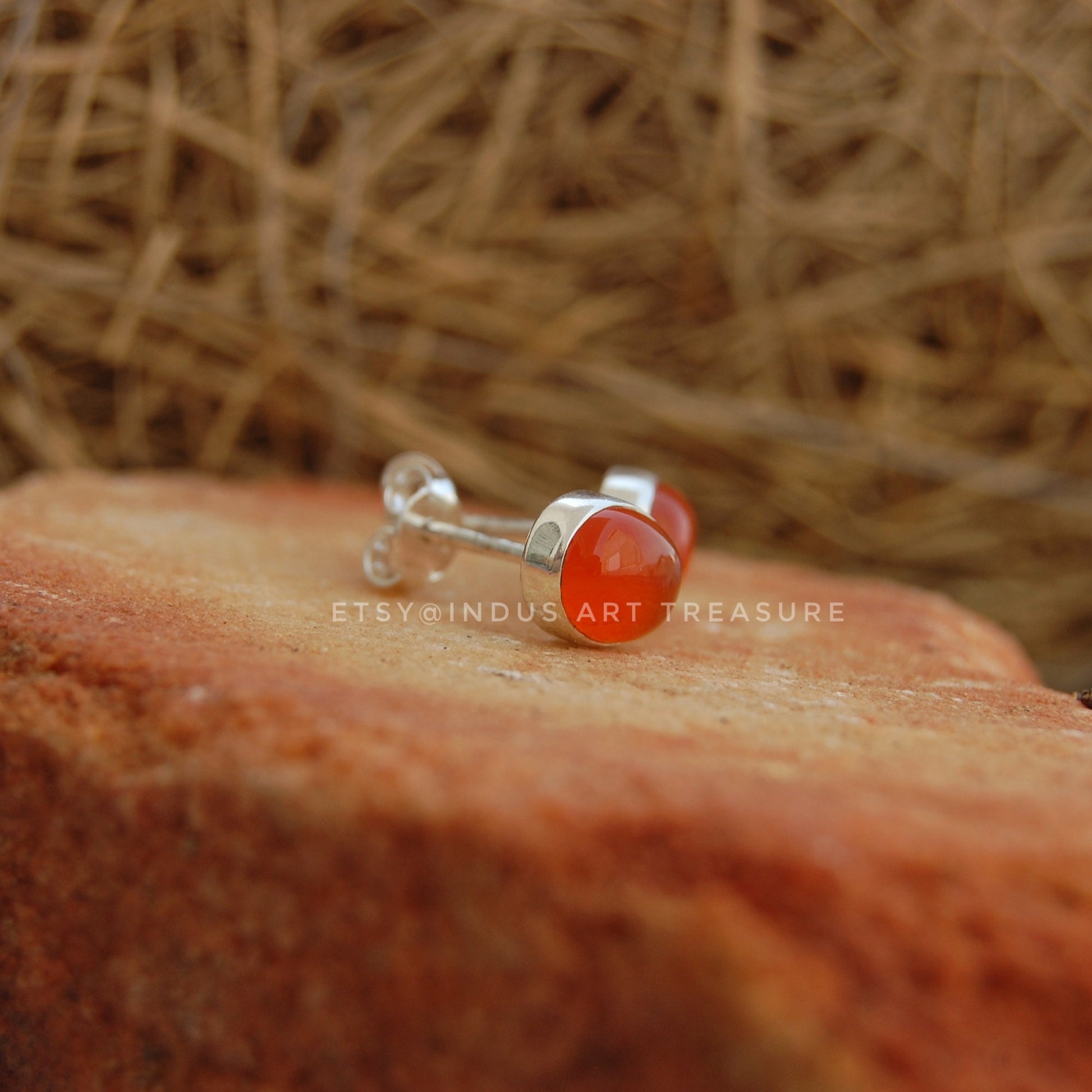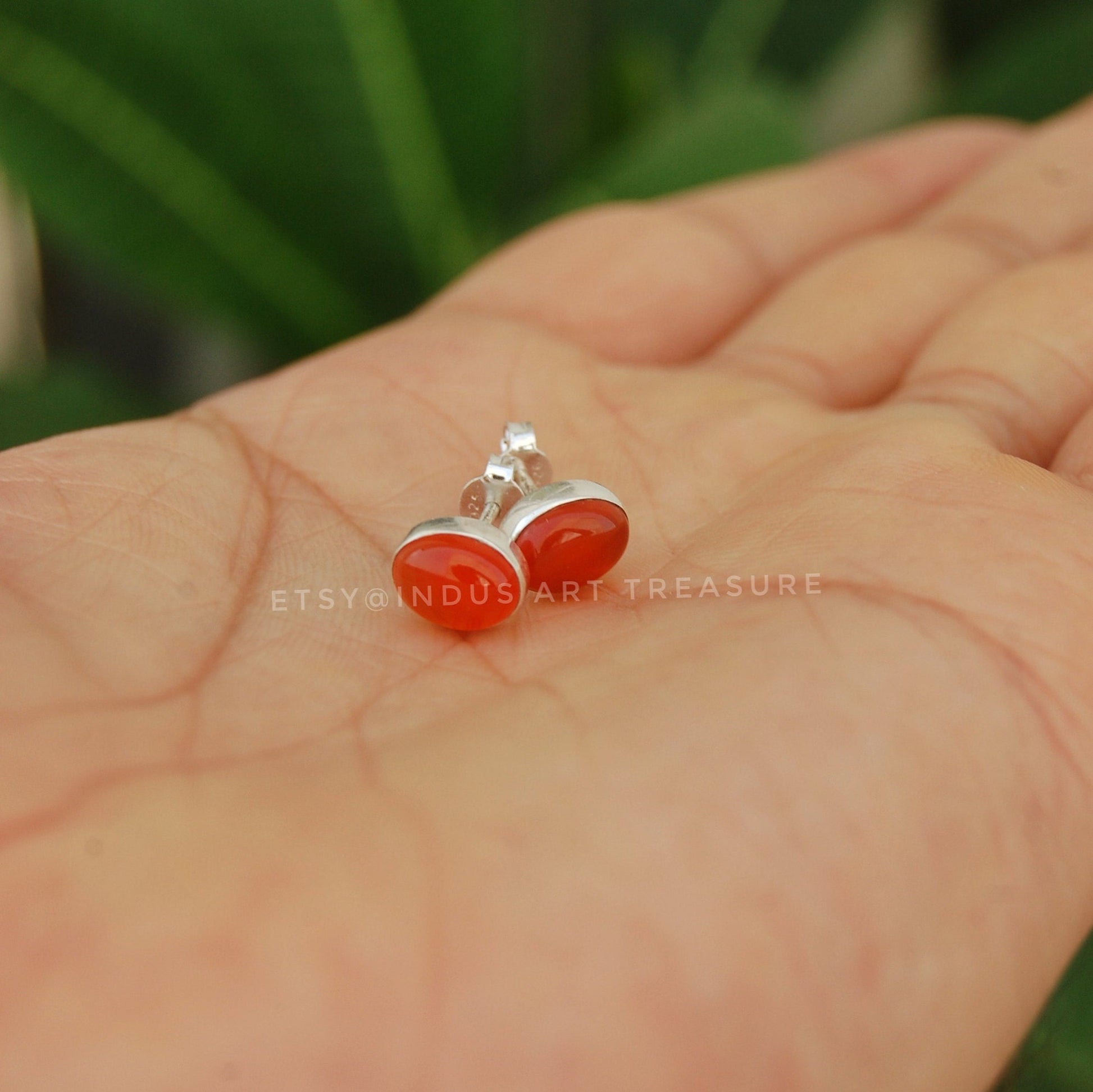------ Welcome To Indus Art Treasure ------ Product : Natural Orange Carnelian Stud Earrings/ 925 Sterling Silver Post Earrings/ December Birthstone/ Orange Stone Studs / Handmade Indian Jewelry/ Birthday Gift for Love/ Dainty Earrings/ Unisex Stud Earrings. Material : 925 Sterling Silver (Nickel Free) & Natural Carnelian. Features : Best Quality Gemstone, Handcrafted Jewelry, 925 Stamped Silver, Custom Plating Option for 18k Gold & Rose Gold. #Processing Time : Your order will be processed in 3-5 business days. #Refund and Return Policy : Full amount will be refunded if you have any problem with your item/items or delivery. #International Shipping Policy : We use UPS and DHL International Shipping, 12-15 days for delivery after it is shipped, Tracking Number Included. All our jewels are made with our expertise of several years. Every order is processed timely and workmanship on each piece is done the best. Feel free to contact me with any questions or comments you might have. ------- Thank you for visiting our Shop! ---------