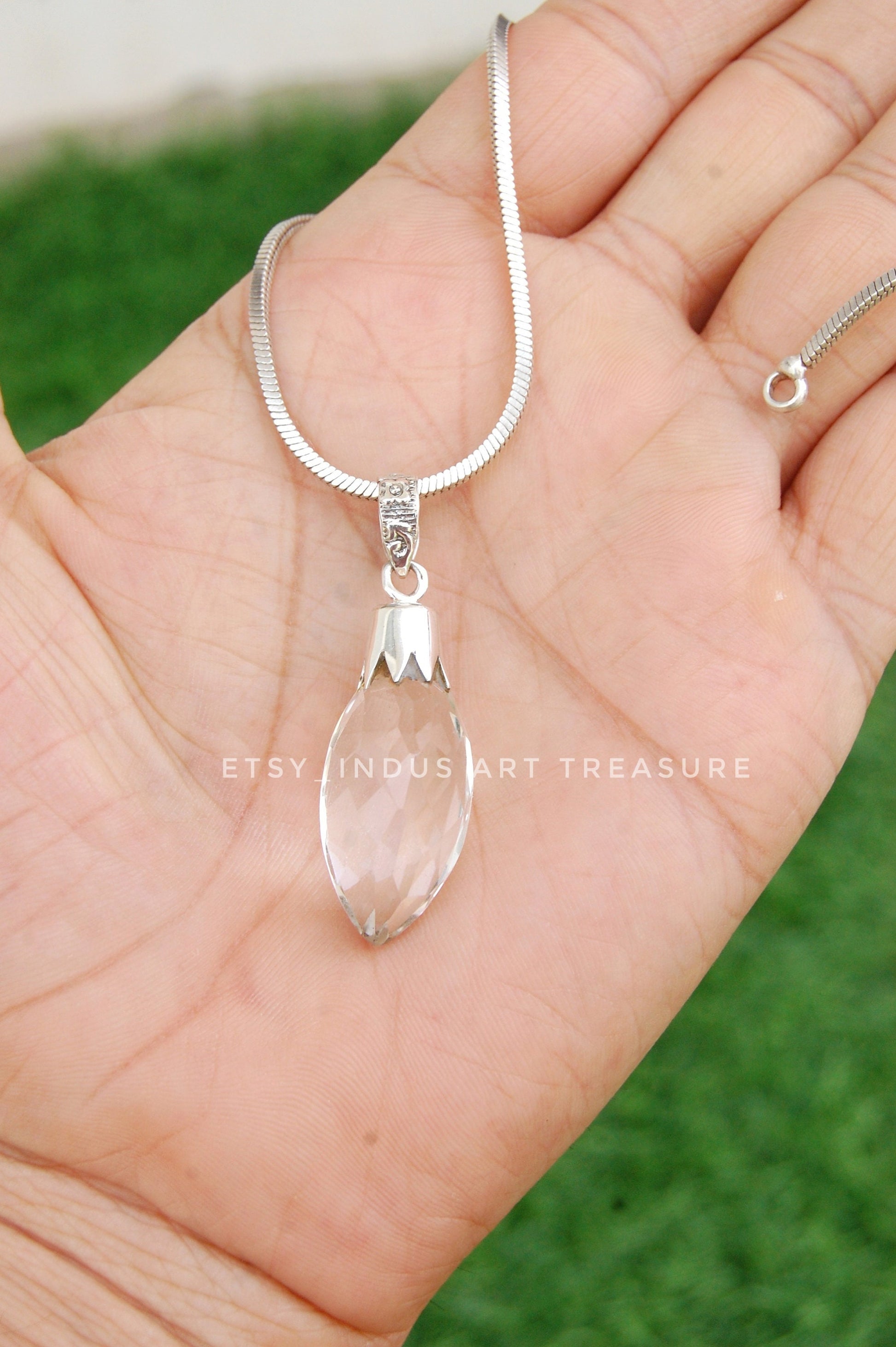 Product : Natural Quartz Marquise Statement Pendant/ 924 Starling Silver Pendant/ April Birthstone/ Quartz Gemstone Jewelry/ Unisex Pendant Necklace/ Birthday Gift/ Charm Necklace Pendant/ Gift for Him & Her.