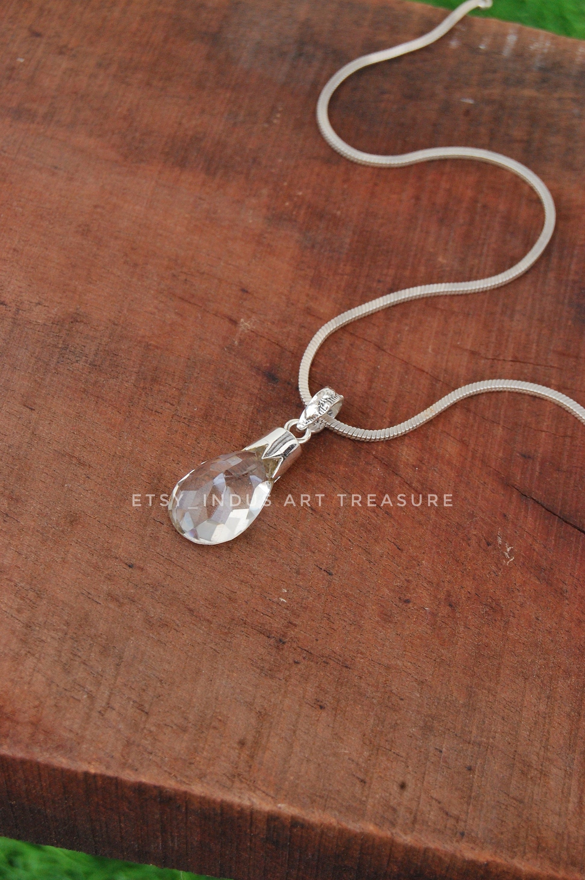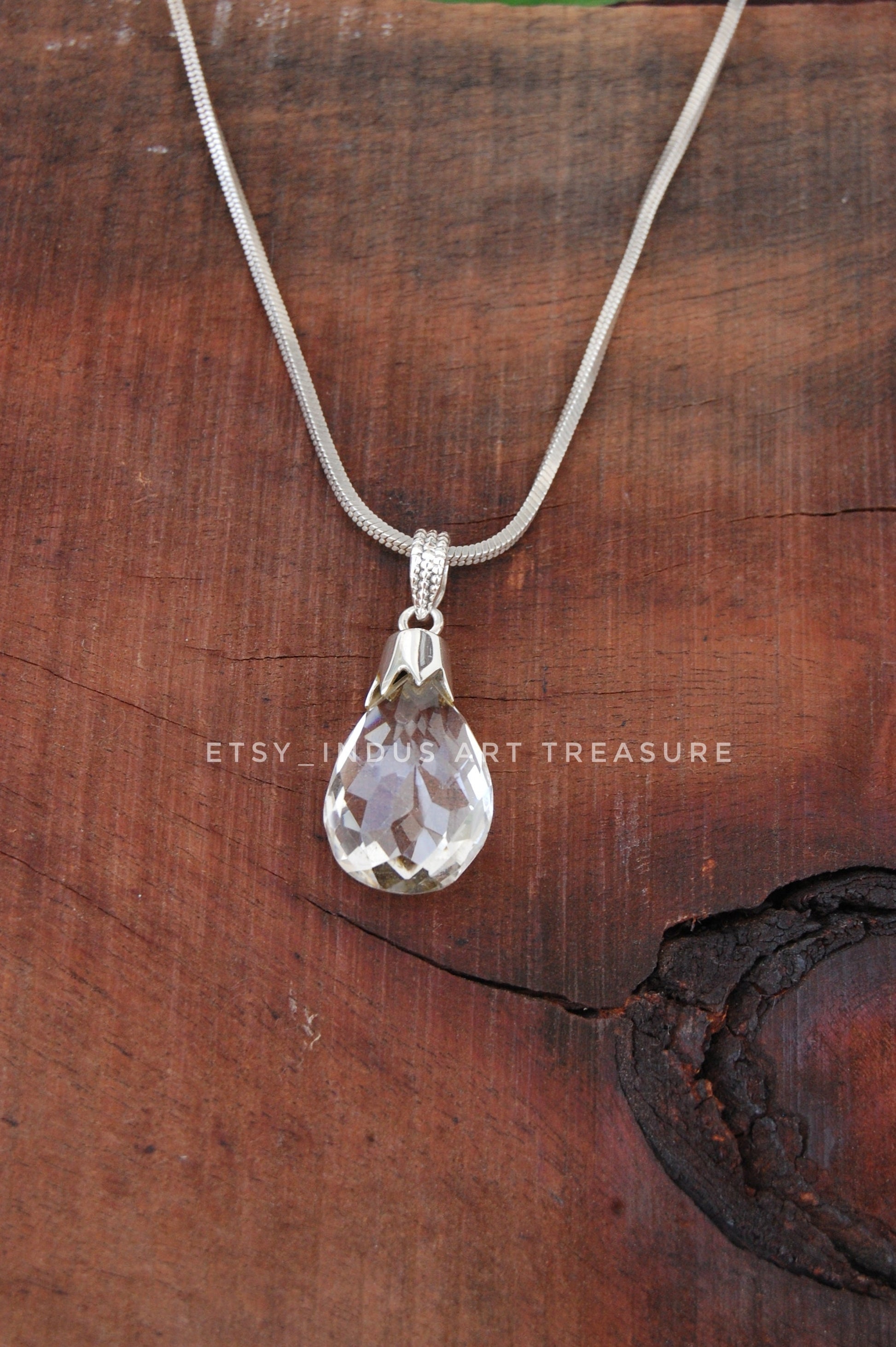 Product : Natural Quartz Marquise Statement Pendant/ 924 Starling Silver Pendant/ April Birthstone/ Quartz Gemstone Jewelry/ Unisex Pendant Necklace/ Birthday Gift/ Charm Necklace Pendant/ Gift for Him & Her.