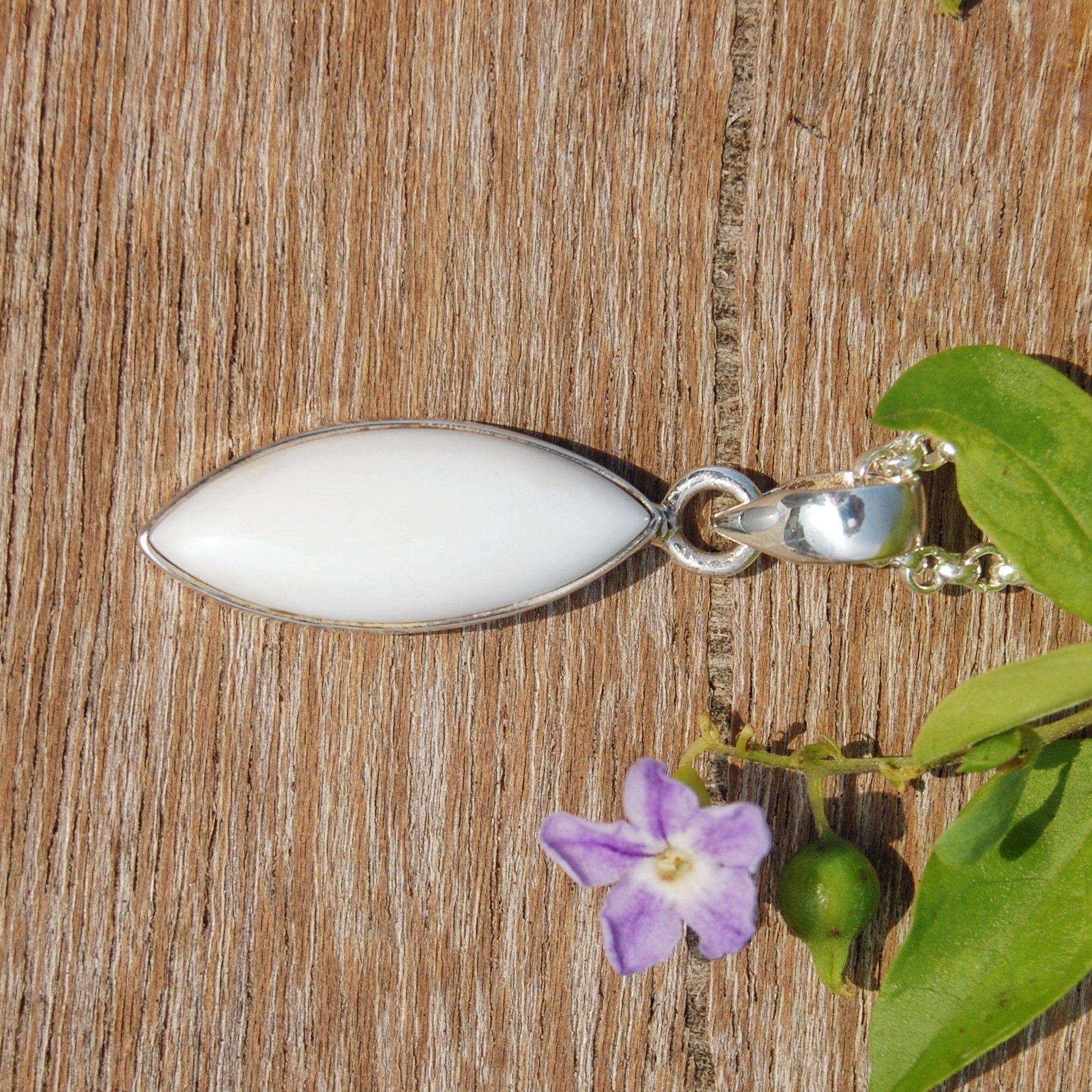 Product : Peaceful White Quartz Marquise Statement Pendant/ 924 Starling Silver Pendant/ April Birthstone/White Quartz Gemstone Pendant/ Unisex Pendant Necklace/ Birthday Gift/ Charm Necklace Pendant/ Gift for Him & Her.