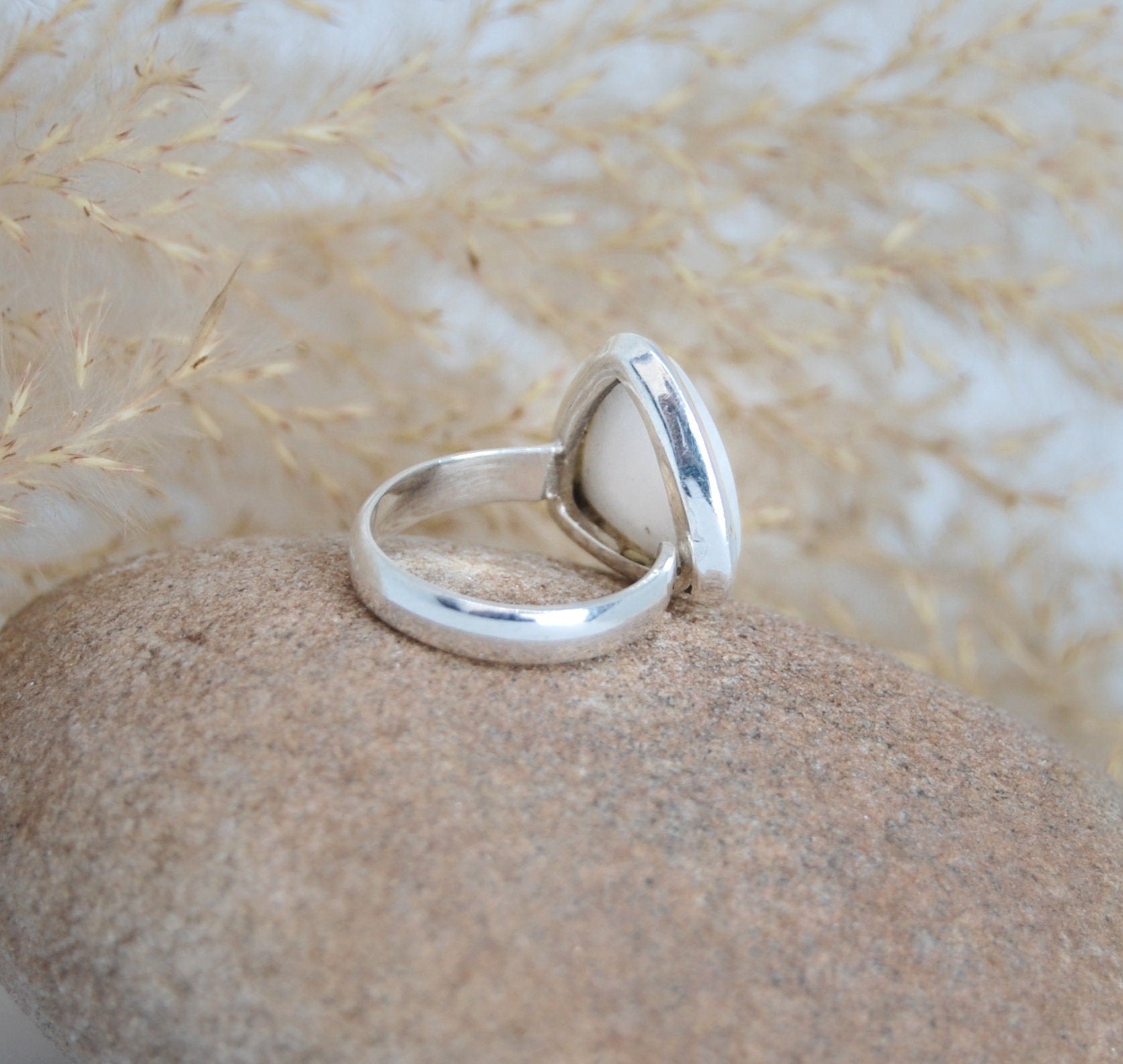 Product : Peaceful White Quartz Handmade Silver Ring.