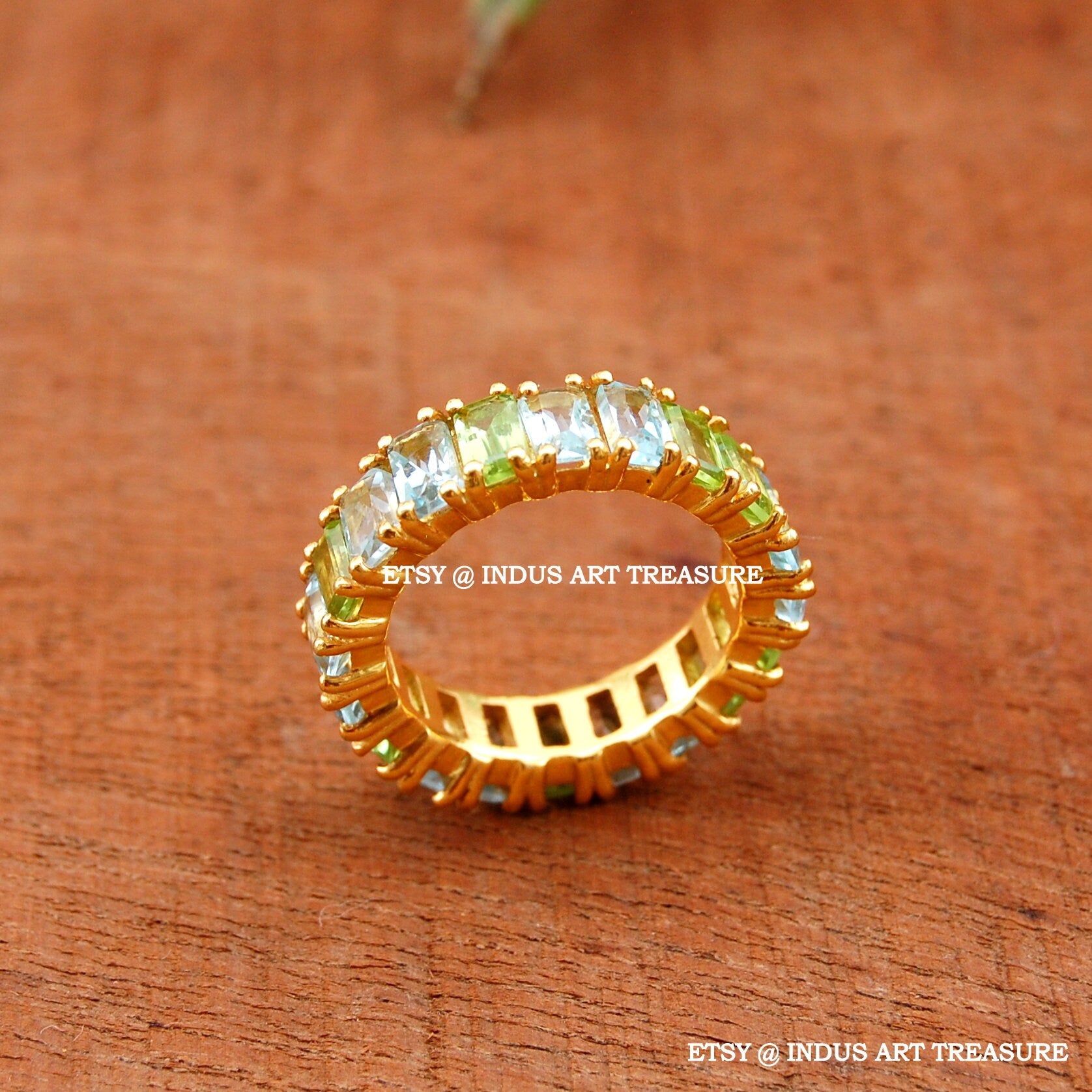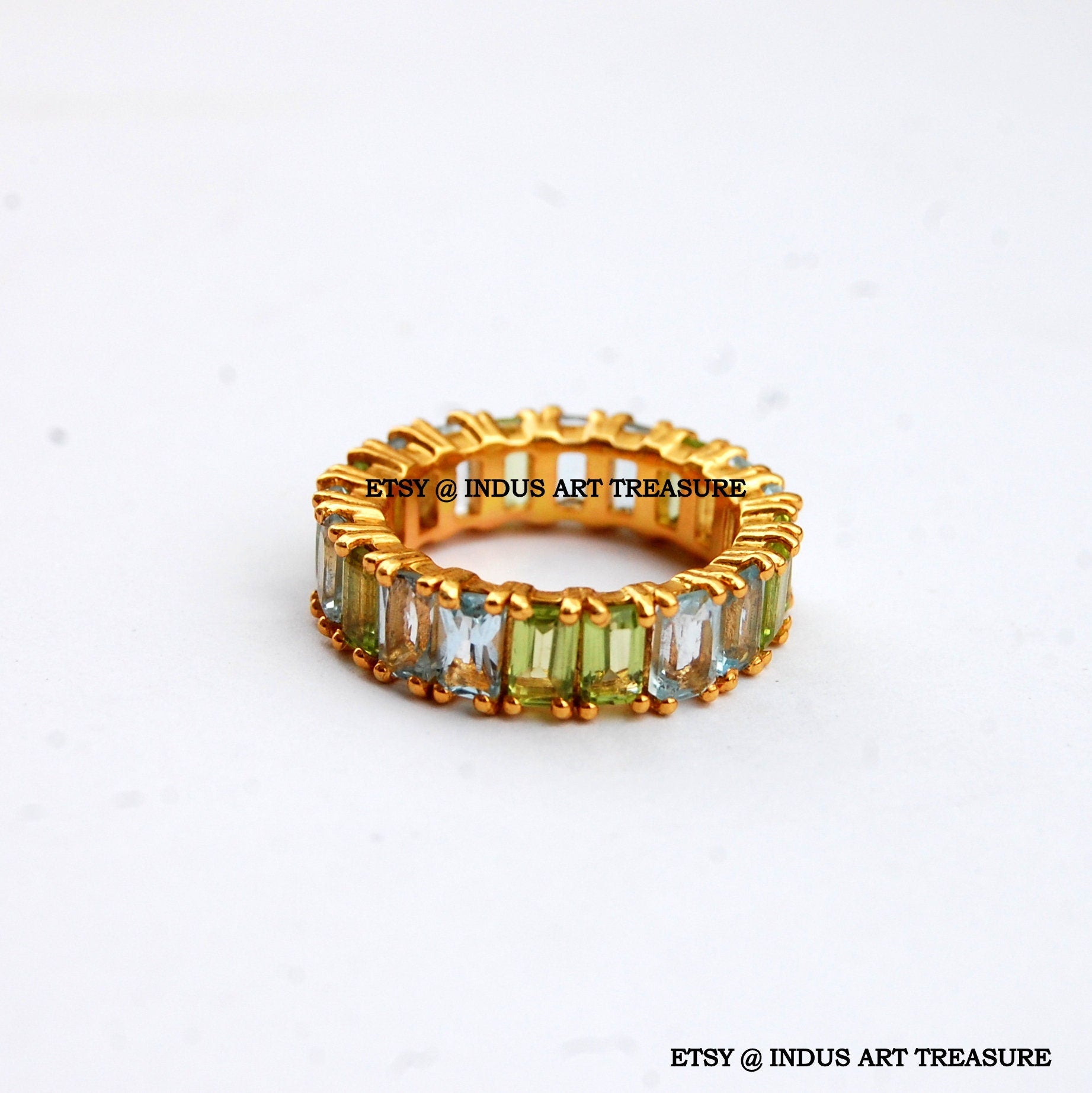 Product : Peridot Ring • August Birthstone Ring • Sterling Silver Multi-Stone Ring • Blue Topaz Ring • Rainbow Moonstone Ring • Gold Ring • Gift Ring