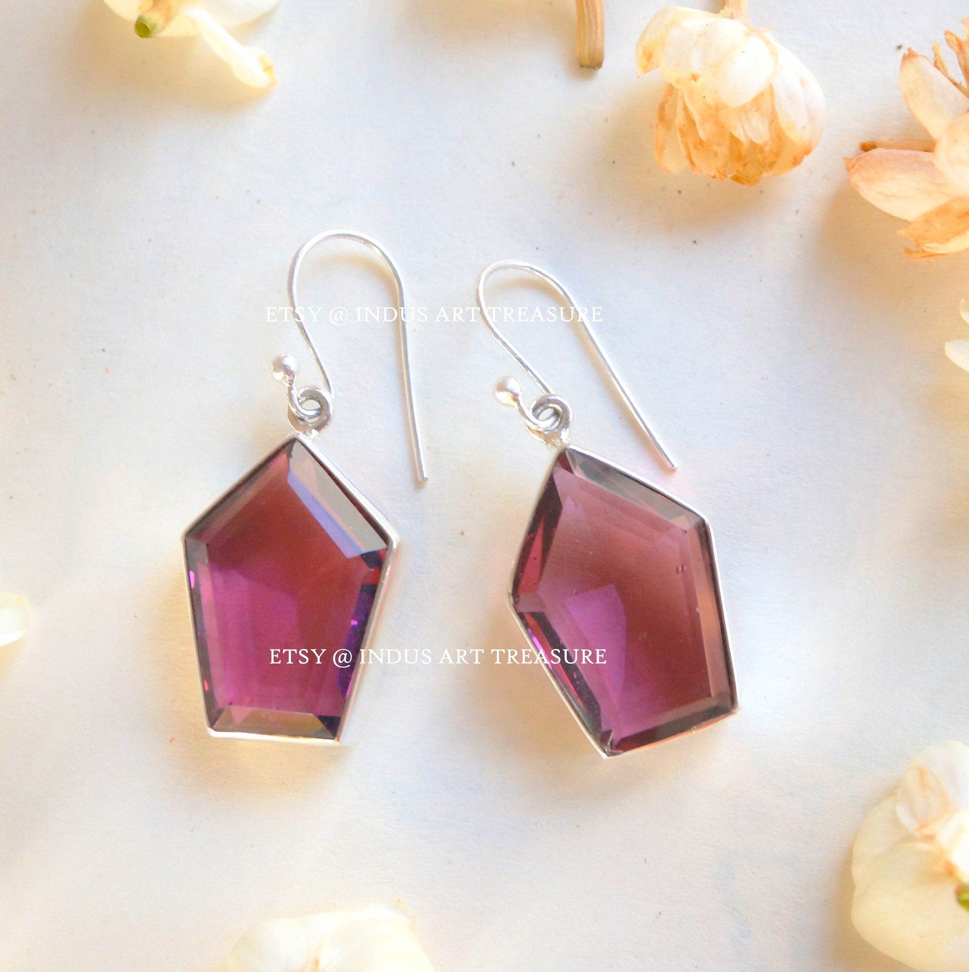 Product : Pink Tourmaline Pentagon Shape Earrings