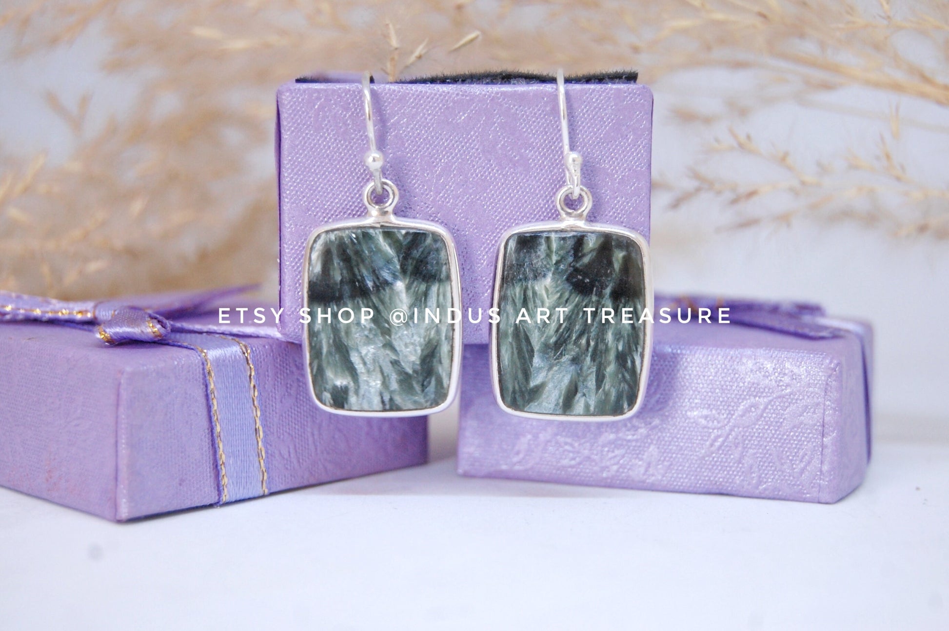 Product : Natural Seraphinite Handmade Drop Earrings.
