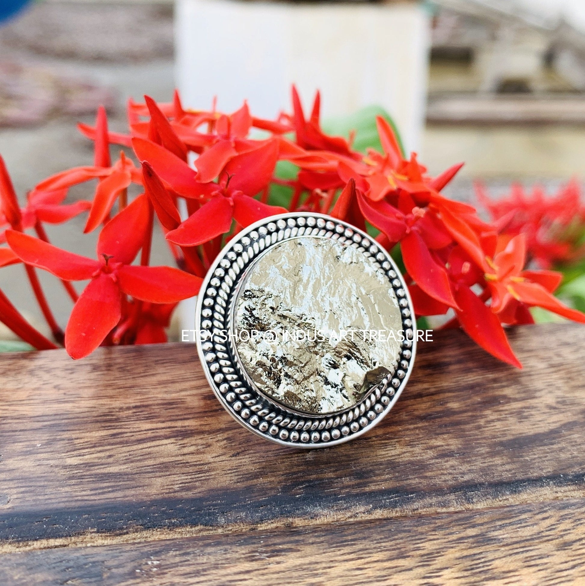 Material : 925 Sterling Silver Ring & Natural Pyrite Rough