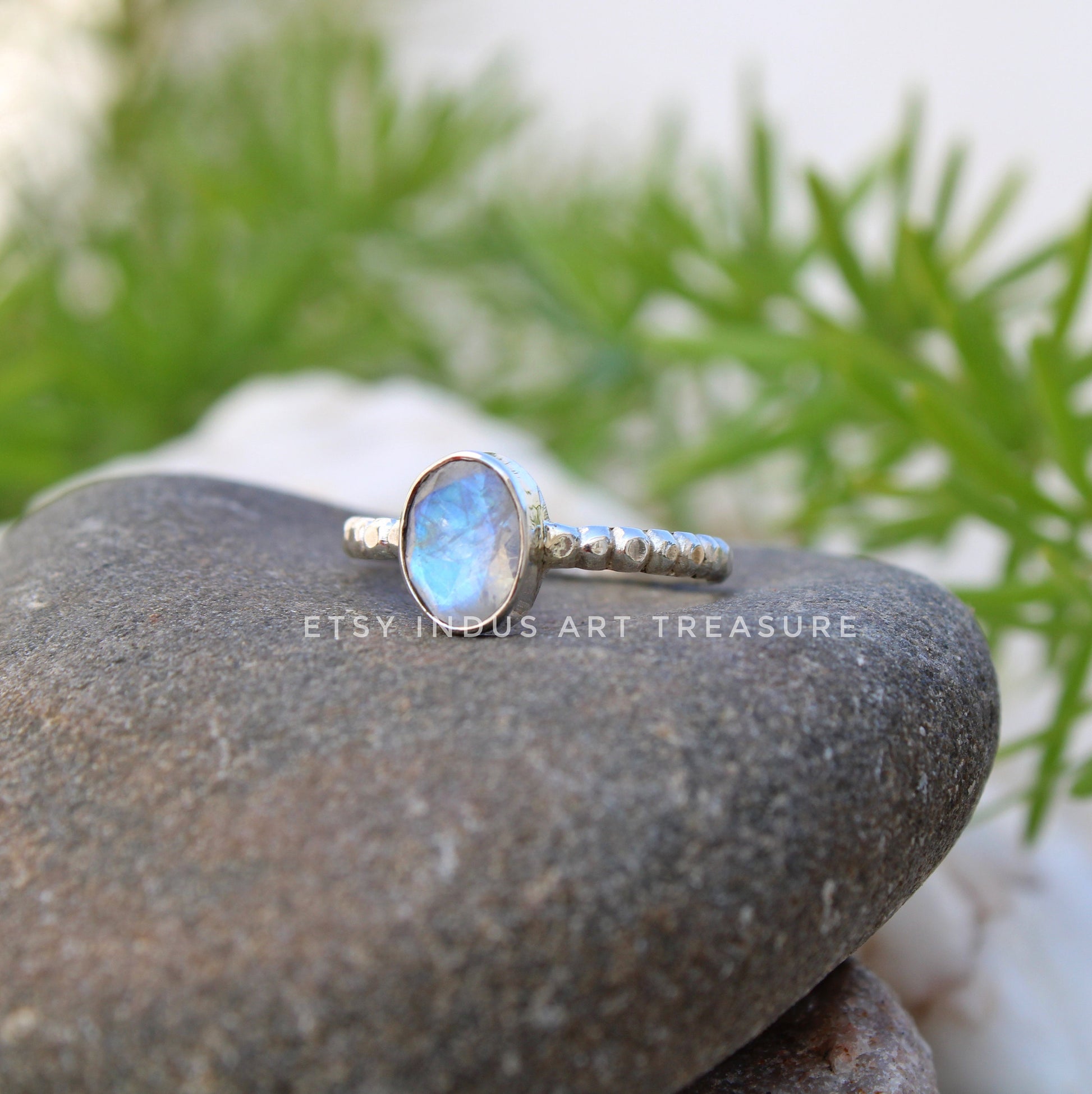 Product : Natural Rainbow Moonstone Dainty Ring, 925 Sterling Silver Ring, June Birthstone Ring, Rainbow Moonstone, Feminine Ring Jewelry, Minimalist Ring, Blue Fire Moonstone.