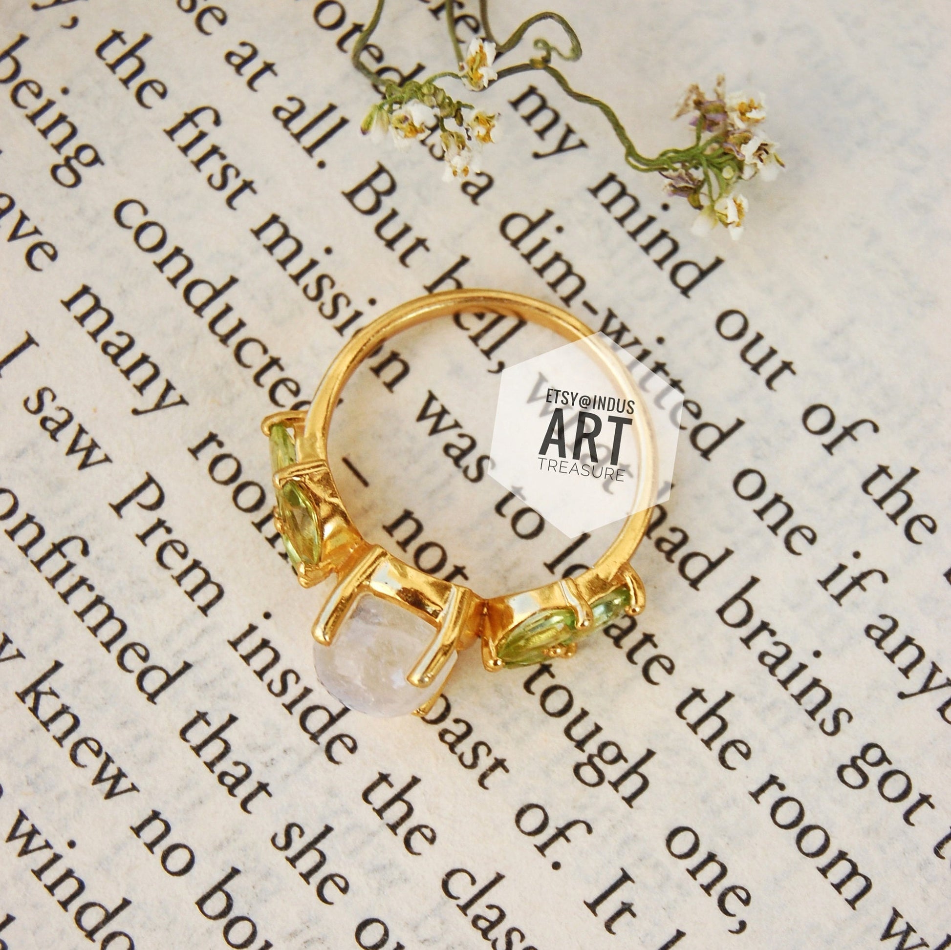 Product : Rainbow Moonstone -Peridot Gold Plated 925 Sterling Silver Delicate Ring, Moonstone Ring, Green Stone Ring, Gemstone Ring Jewelry, Anniversary Gift Ring, Wedding Ring, Twig Fashion Ring, Gifts for Her.