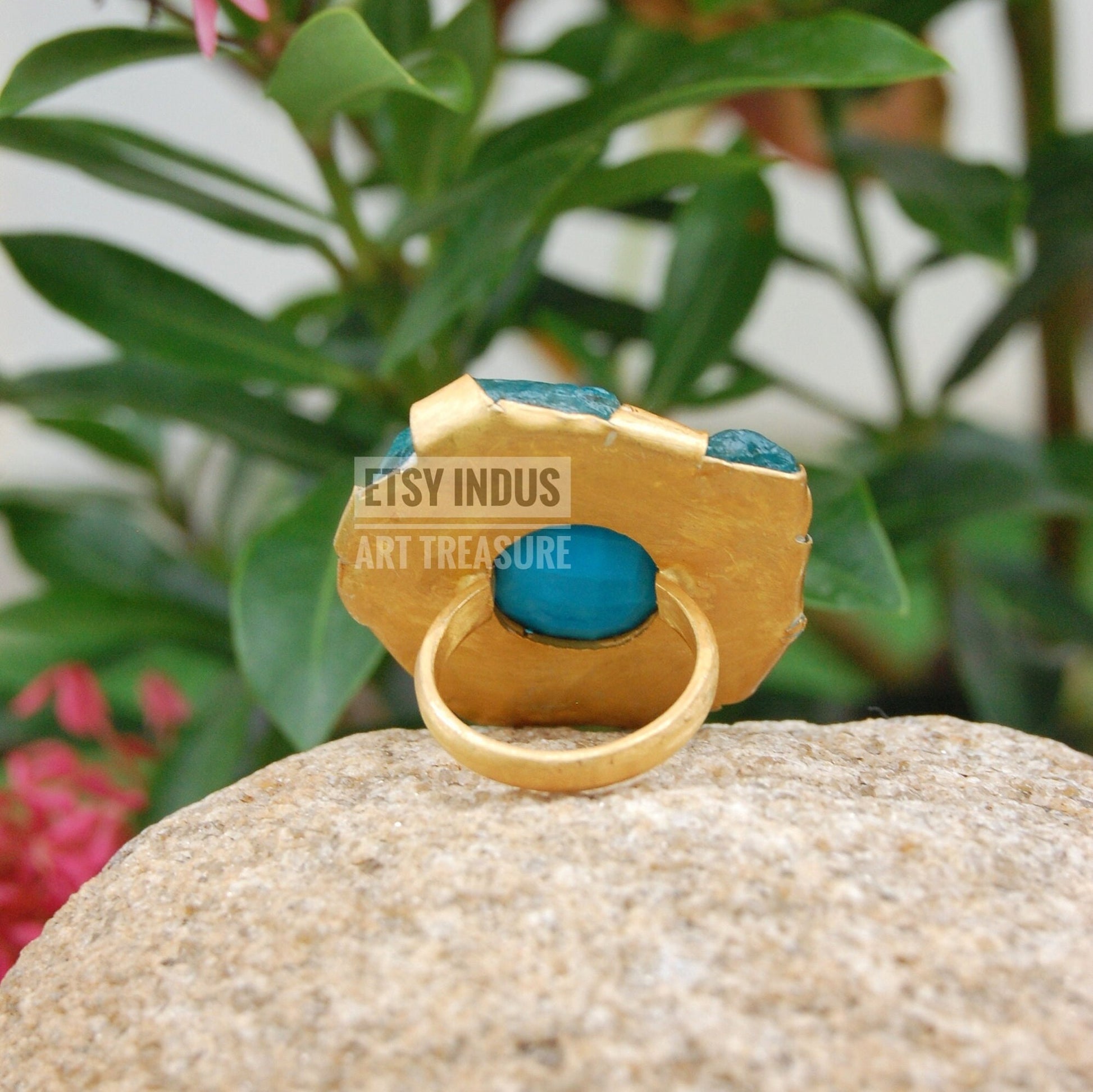 Product : Raw Apatite Crystal- Natural Turquoise Gold Plated Delicate Floral Ring, Statement Gold Ring, Wedding Ring Jewelry, Engagement Ring, Floral Propose Ring, Blue Gemstone Ring, Apatite Ring, Healing Turquoise Ring, Perfect Anniversary Gift for Women .
