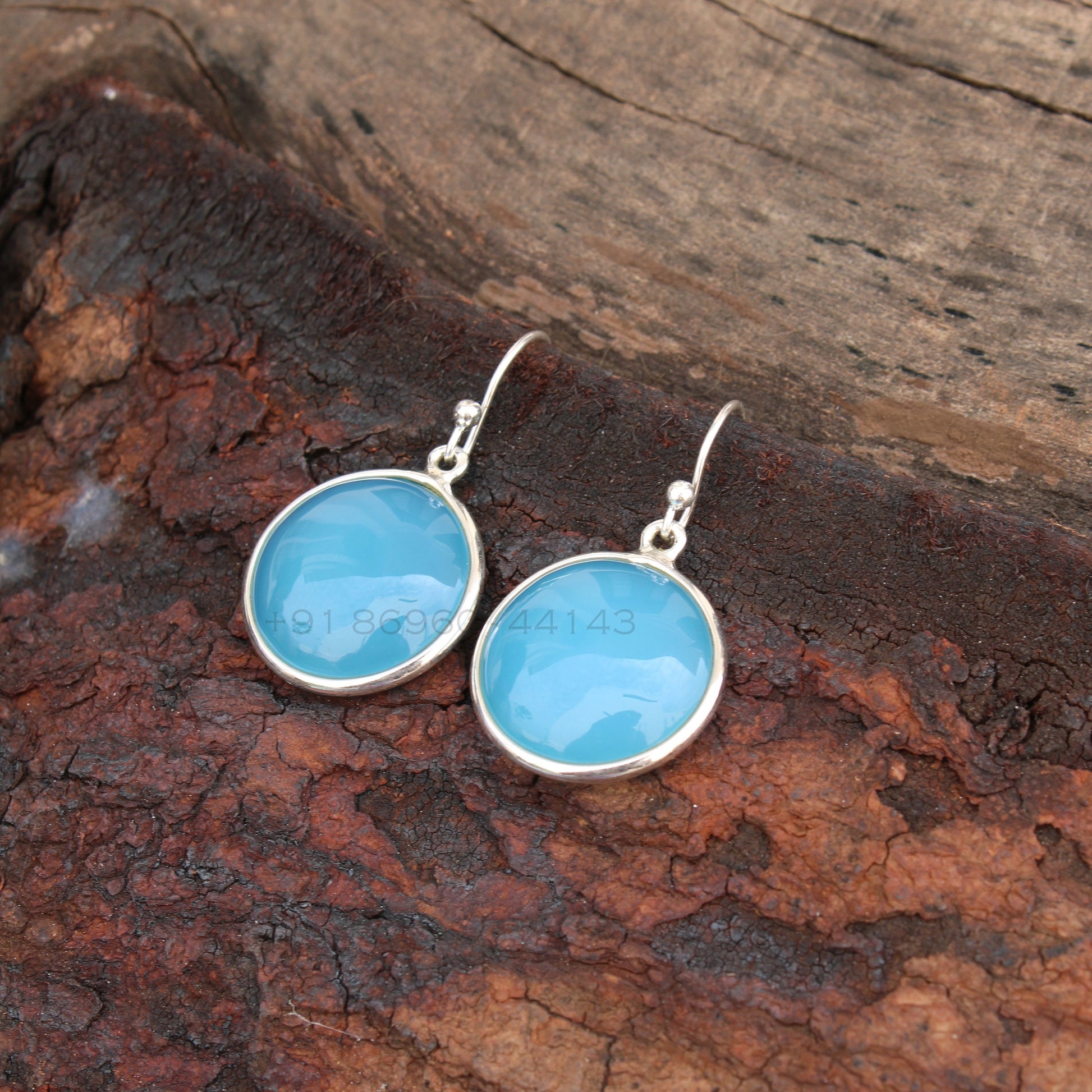Aqua Chalcedony Big Round Earrings