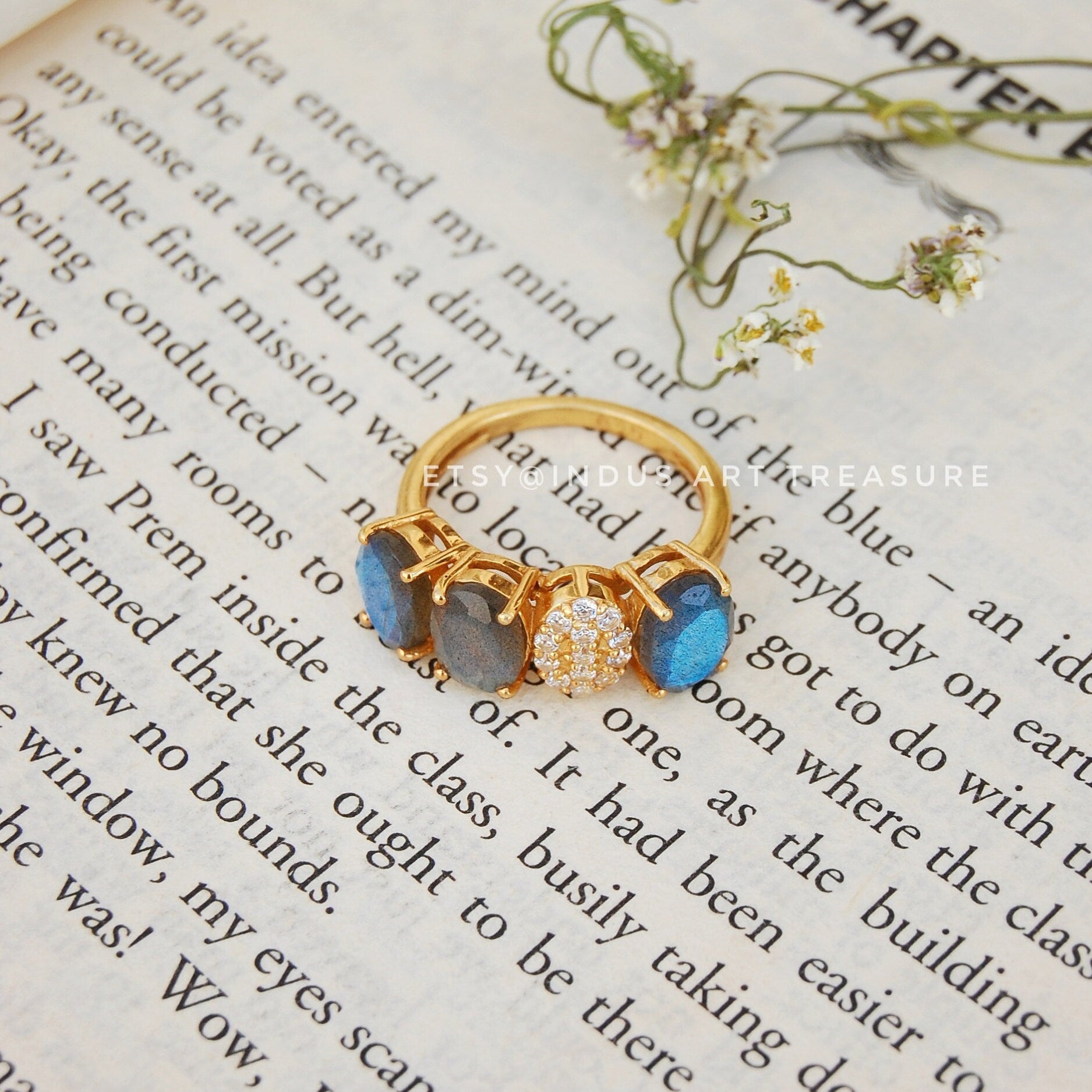 Product : Natural Blue Labradorite- Diamond Dainty Gold Ring/ February Birthstone/ Gold Plated 925 Sterling Silver Ring/ Bridesmaid Ring/ Real Diamond Ring/ Wedding Ring/ Propose Rings for Women/ Labradorite Ring Jewelry/ Birthday Gift for Her/ Gift for Mum/ Anniversary Gifts.