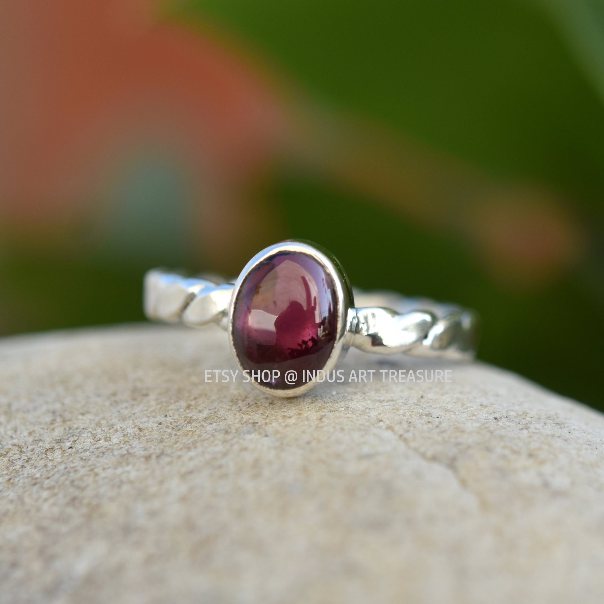 Red Garnet Twisted Band Ring