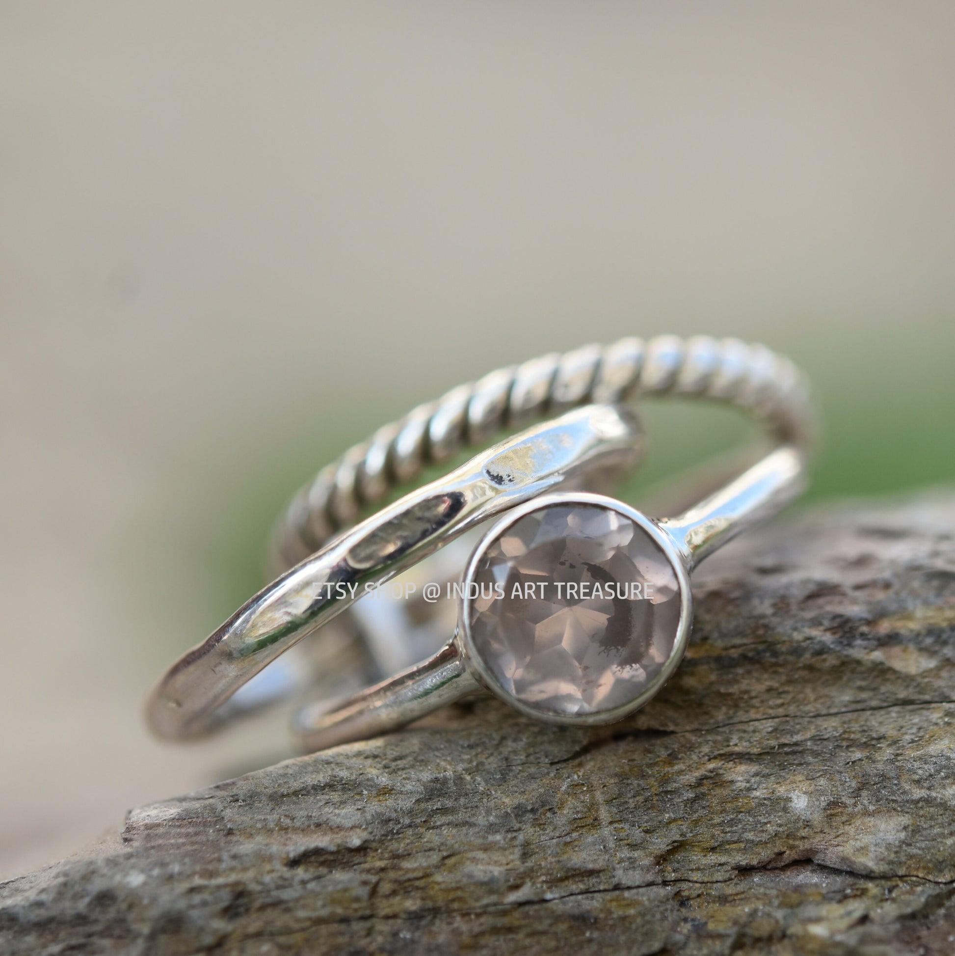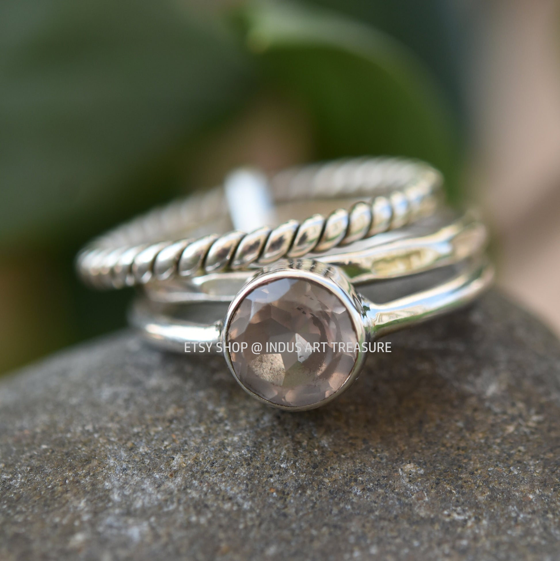 Product : Rose Quartz Stacking Ring Set for Women, 925 Sterling Silver Ring, Stackable Ring Set, Gifts for Girls, Natural Pink Rose Quartz, Set Of Three Rings, Pink Gemstone, Anniversary Gifts.