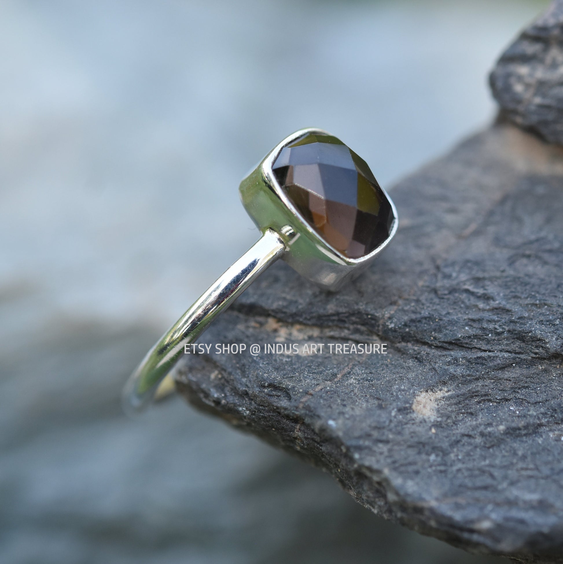 Product : Smoky Quartz Dainty Ring, Women's Ring, Handmade Ring, 925 Sterling Silver Ring, Black Gemstone Ring, Healing Stone, Gifts for Women, Gifts for Christmas.