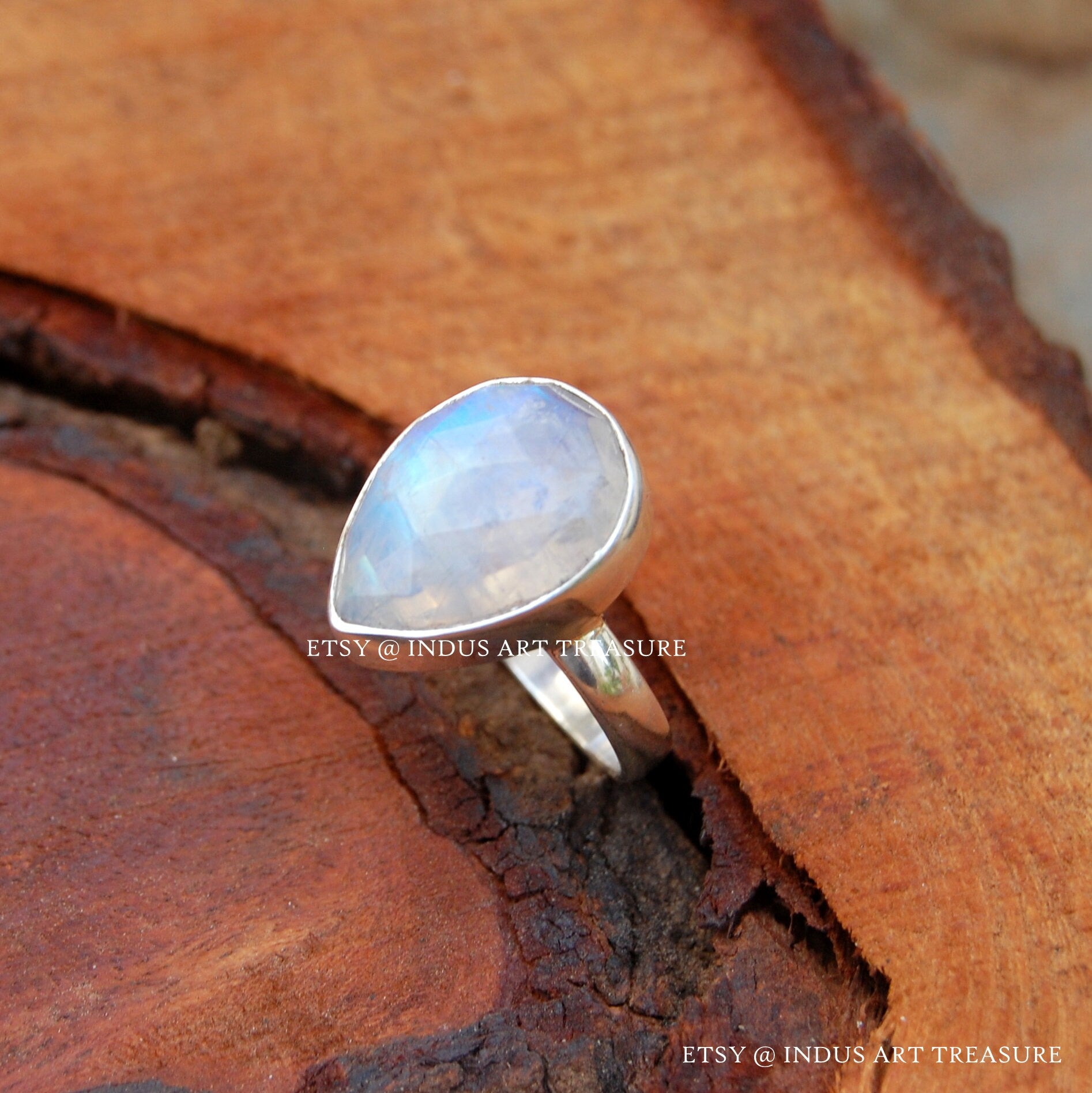 Product : Natual Rainbow Moonstone Pear Shape Ring