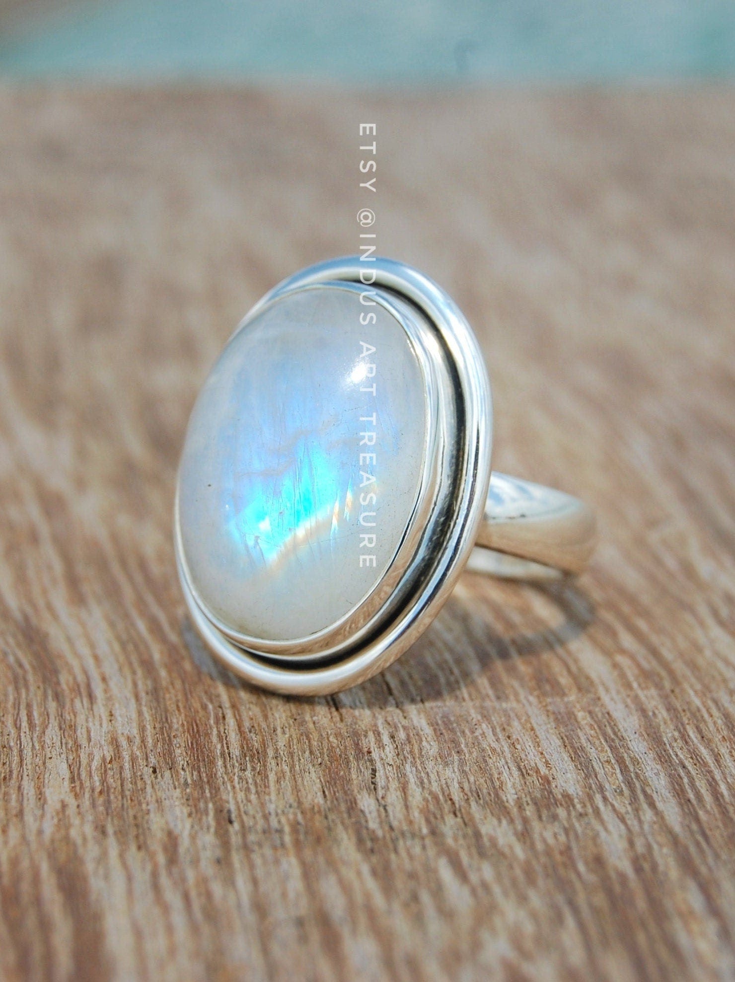 Product : Natural Rainbow Moonstone Handmade Statement Ring/ Rainbow Moonstone/ 925 Sterling Silver Ring/ June Birthstone Jewelry/Moonstone Mood Ring Handmade Indian Jewelry/ Rainbow Moonstone/ Birthday Gift/ Statement Ring/ Unisex Ring.
