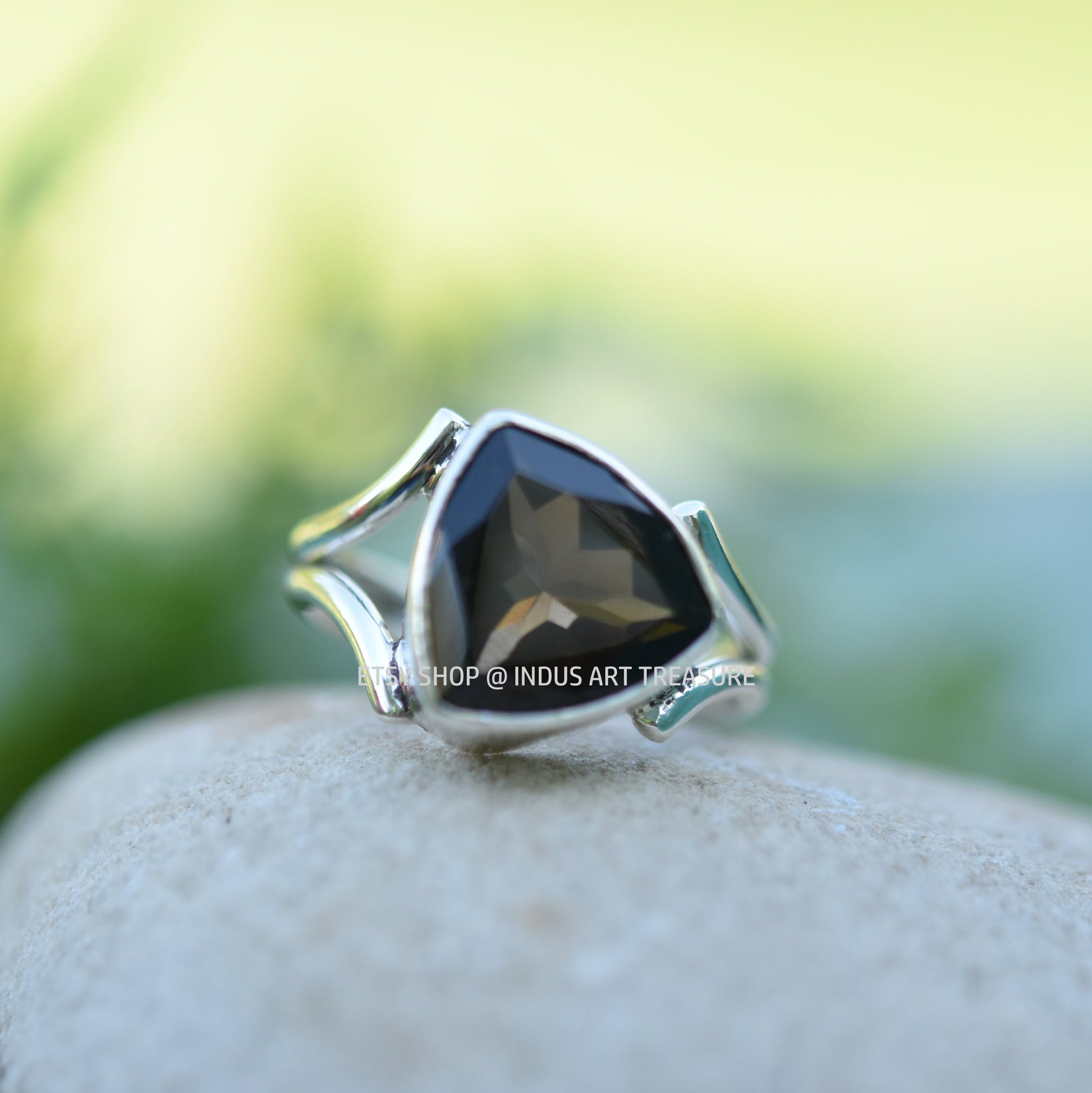 Product : Natural Smoky Quartz Handcrafted Silver Ring, Trillion Shape Smoky Quartz Dainty Ring, 925 Sterling Silver Ring, June Birthstone, Rings for Women, Minimalist Silver Ring, Gifts for Her