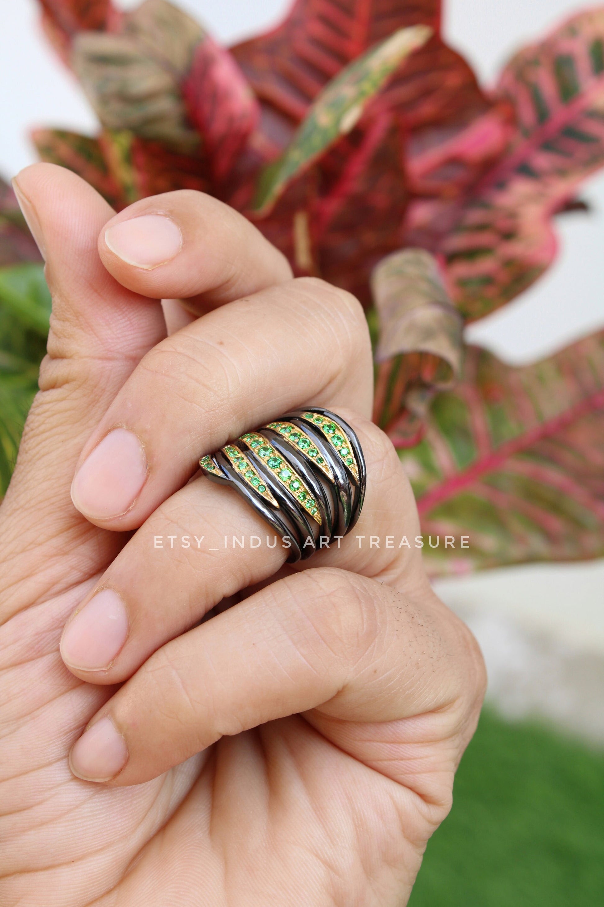 Product : Natural Tsavorite Garnet Gold Black Rhodium Ring/ Birthstone Ring/ Gold Plated 925 Sterling Silver Ring/ Anniversary Gift Rings for Women/ Black Rhodium Ring/ Green Gemstone Ring/ Birthday Gift for Her.