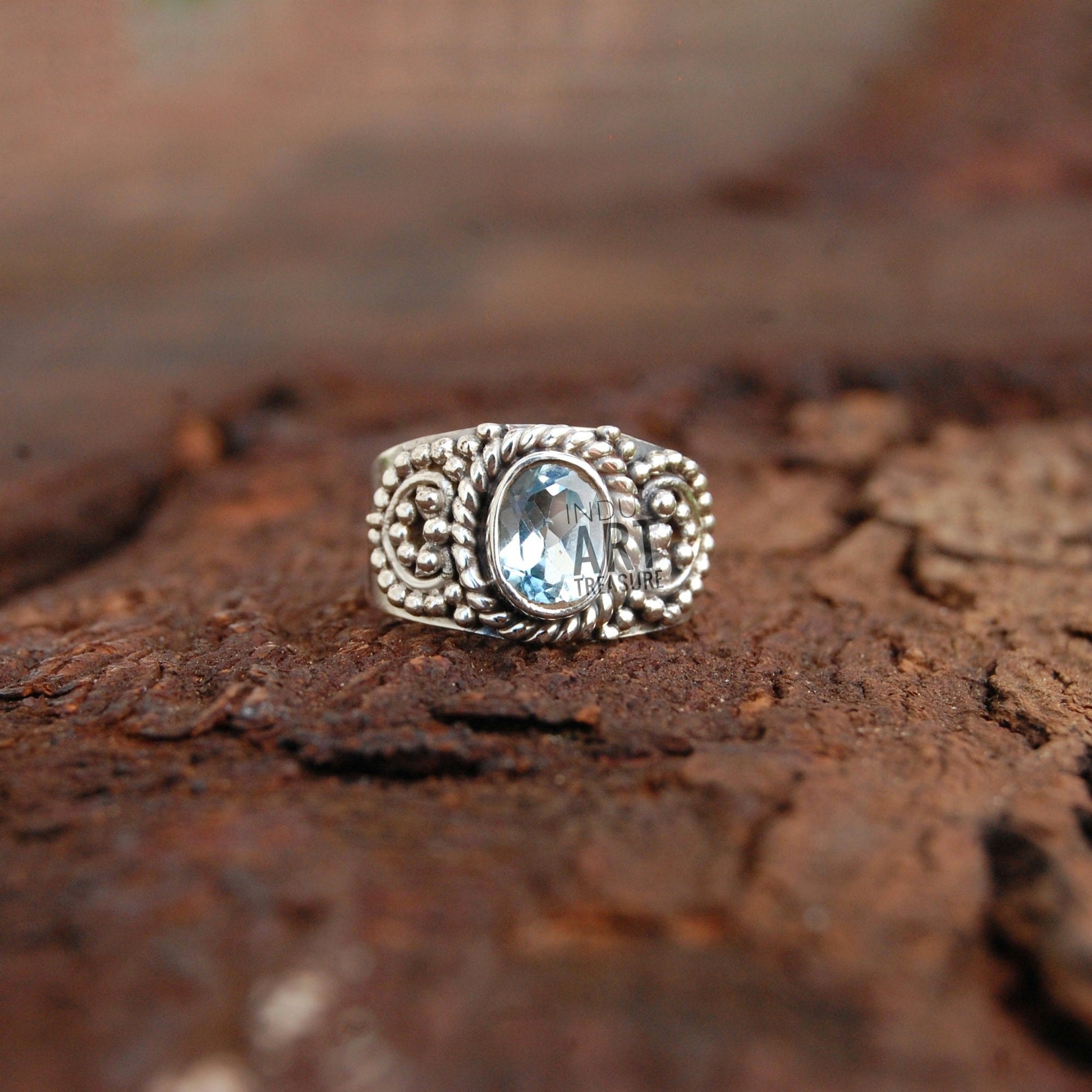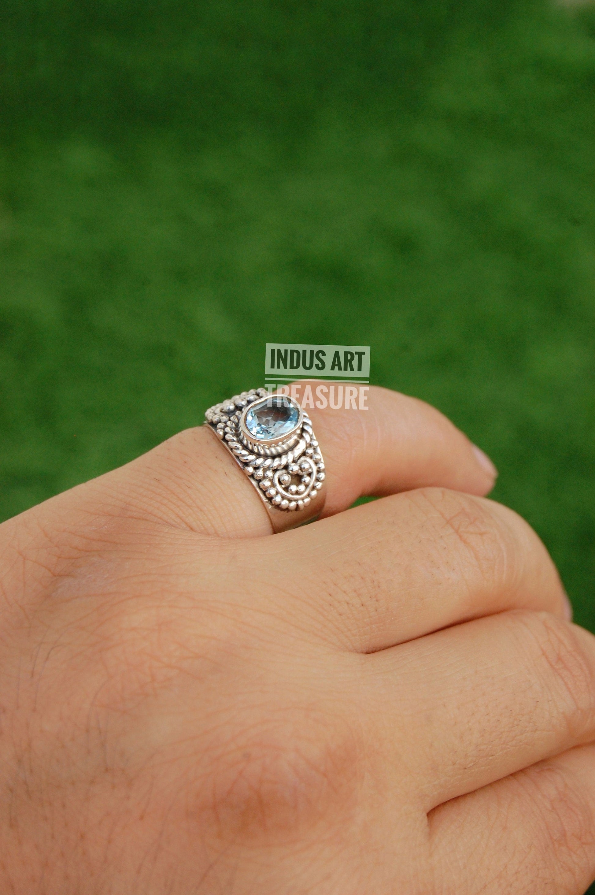 Product : Blue Topaz Wide Band Silver Ring, Vintage Style Wide Band Boho Ring, 925 Sterling Silver Ring, November Birthstone Ring, London Blue Topaz Ring, Promise Ring for Love, Blue Stone Ring, Gemstone Jewelry, Handmade Silver Ring.