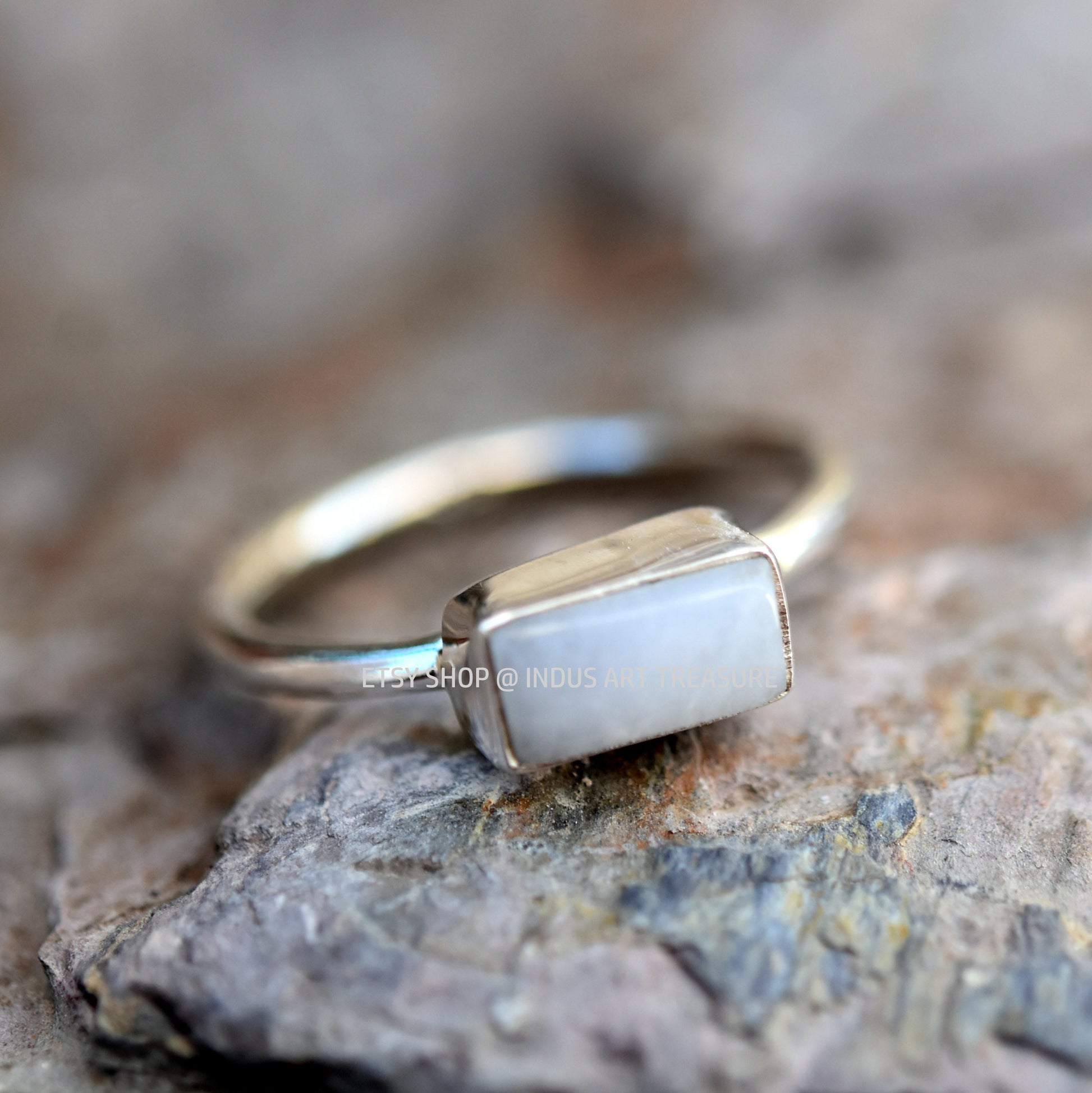 Product : Natural White Quart Dainty Ring, Birthstone Ring, Quartz Ring, 925 Sterling Silver Ring, Handmade Ring, Peace Ring, White Stone Ring,Gift for Her, Minimalist Ring.