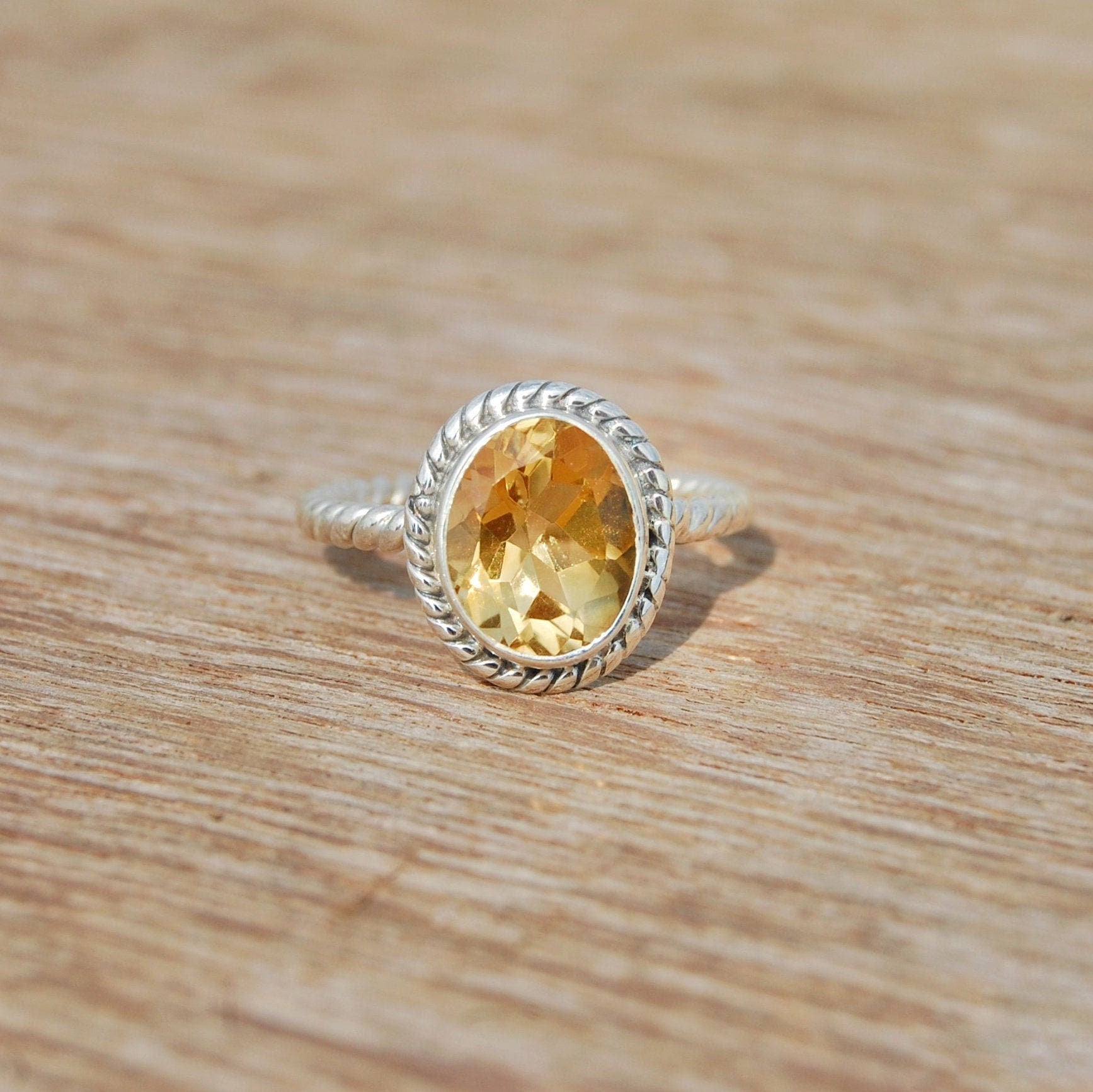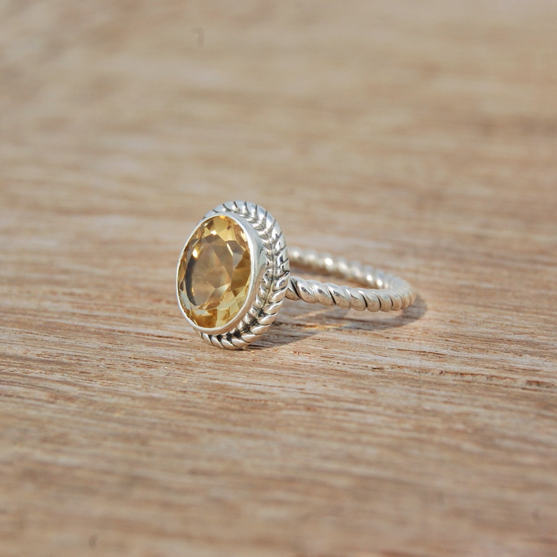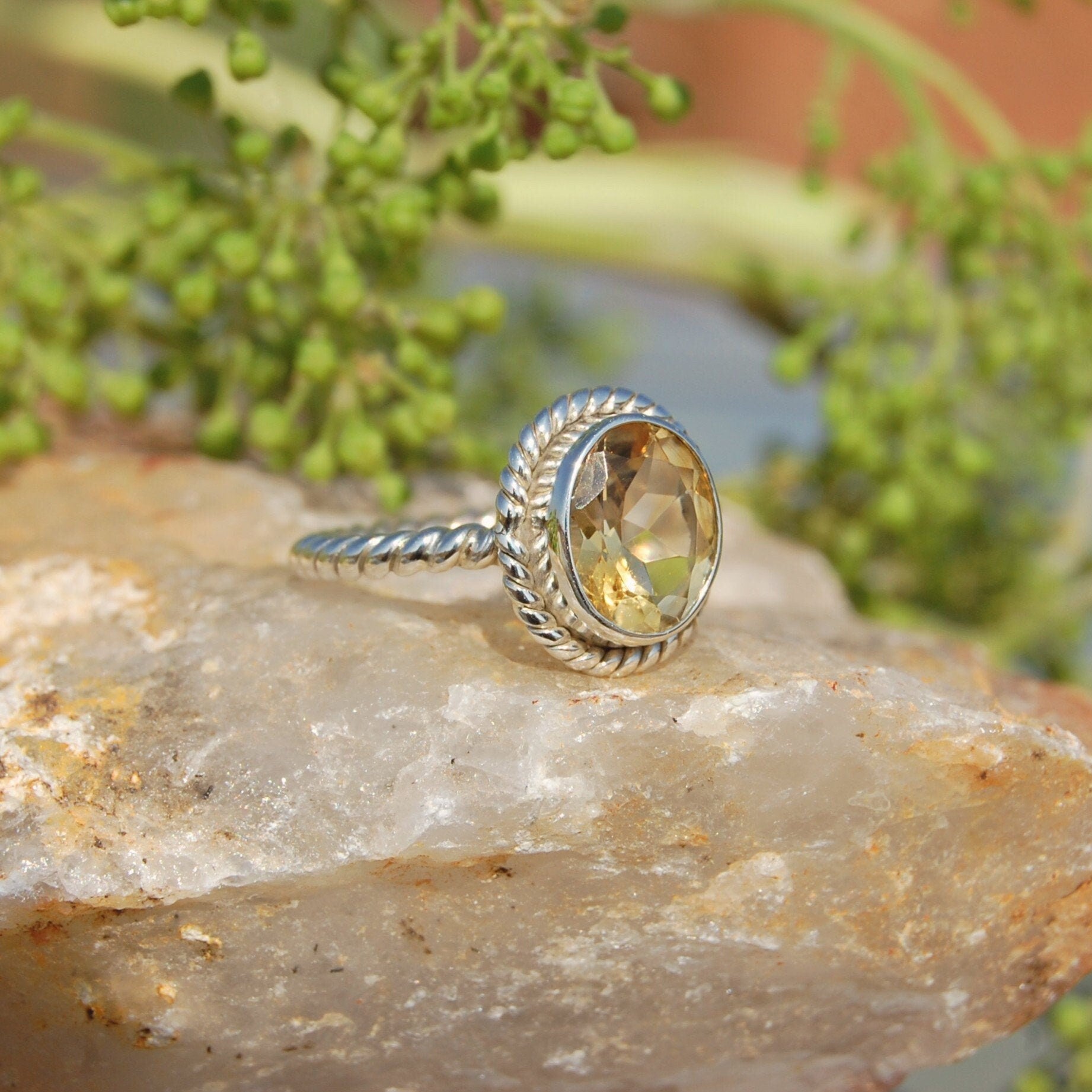 Product : Elegant Yellow Citrine Twisted Band Silver Ring.