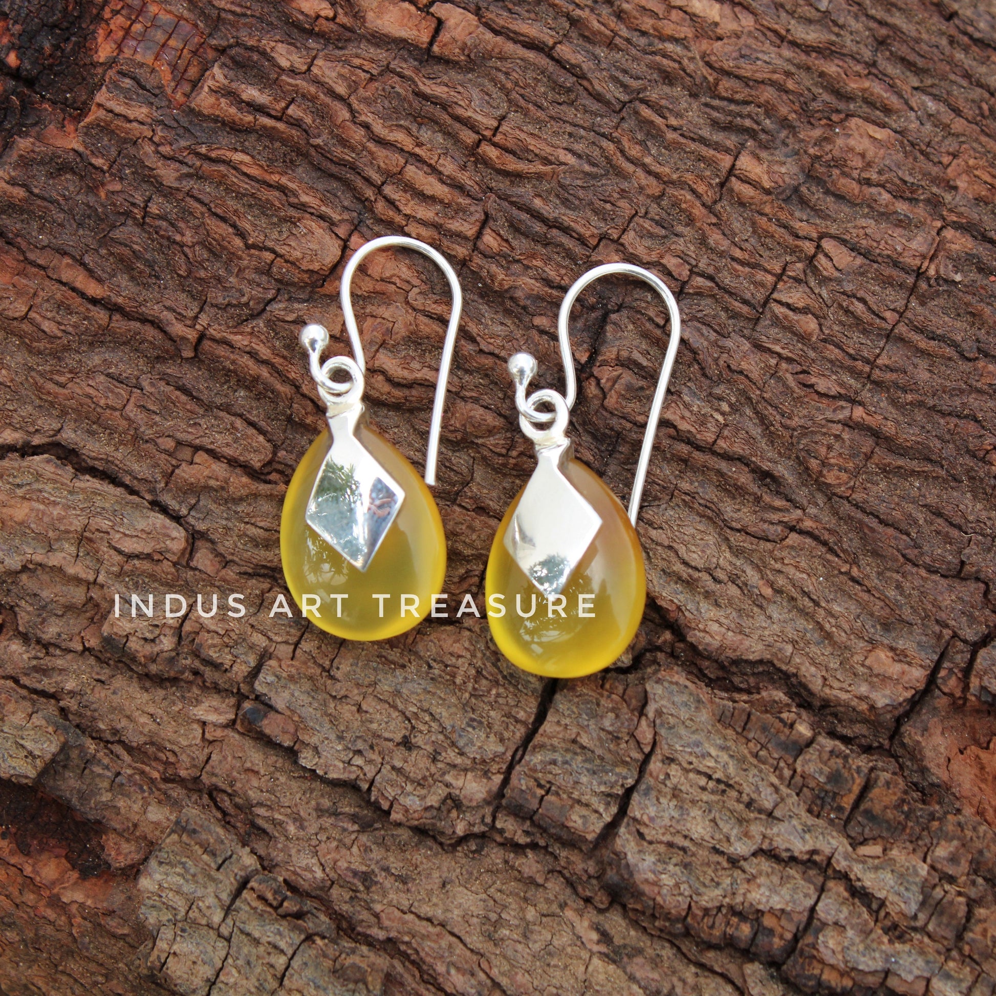 Product : Natural Yellow Onyx Drop Earrings for Women, 925 Sterling Silver Earrings, Dangle Drop Earrings, Anniversary Gift for Her, Yellow Gemstone Earrings, Casual Jewelry.